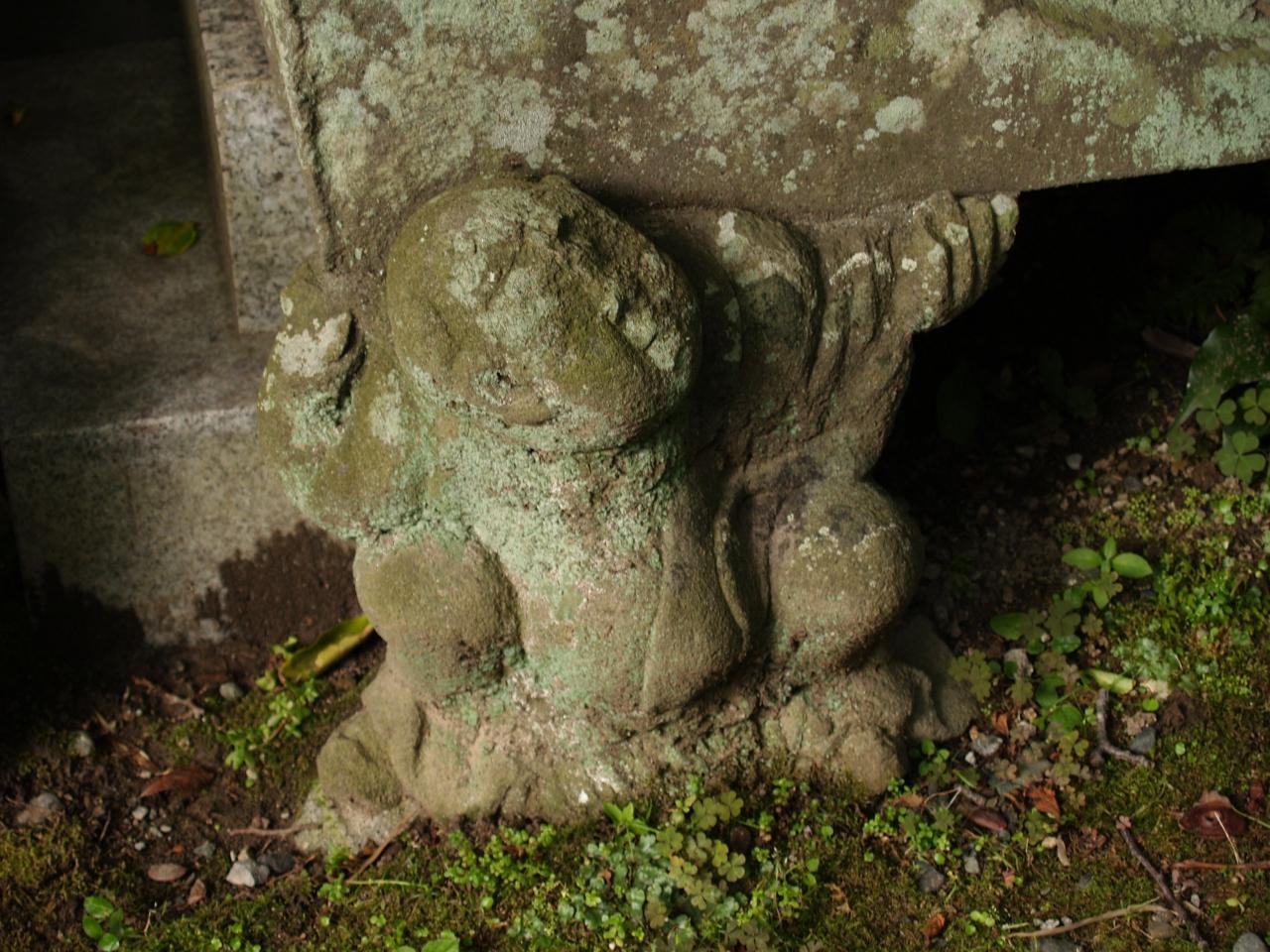 長勝寺の手水鉢は小僧の石像で支えられている。これは鎌倉・本覚寺の手水鉢(https://4travel.jp/travelogue/11467229)と似ている。