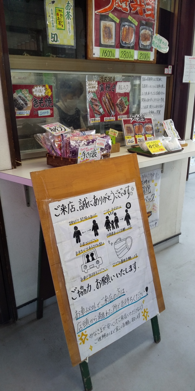 天竜浜名湖鉄道の新所原駅構内にあるうなぎやさんです。コロナの影響で店内飲食はお休みでテイクアウトのみの営業です。弁当は出来上がりまで10分程度かかるので鉄道利用は時間に注意で事前に予約がベター。お店でオーダーして代金を払い10分ほどで名前を呼ばれて新聞紙に包まれたうなぎ弁当を受け取れます。