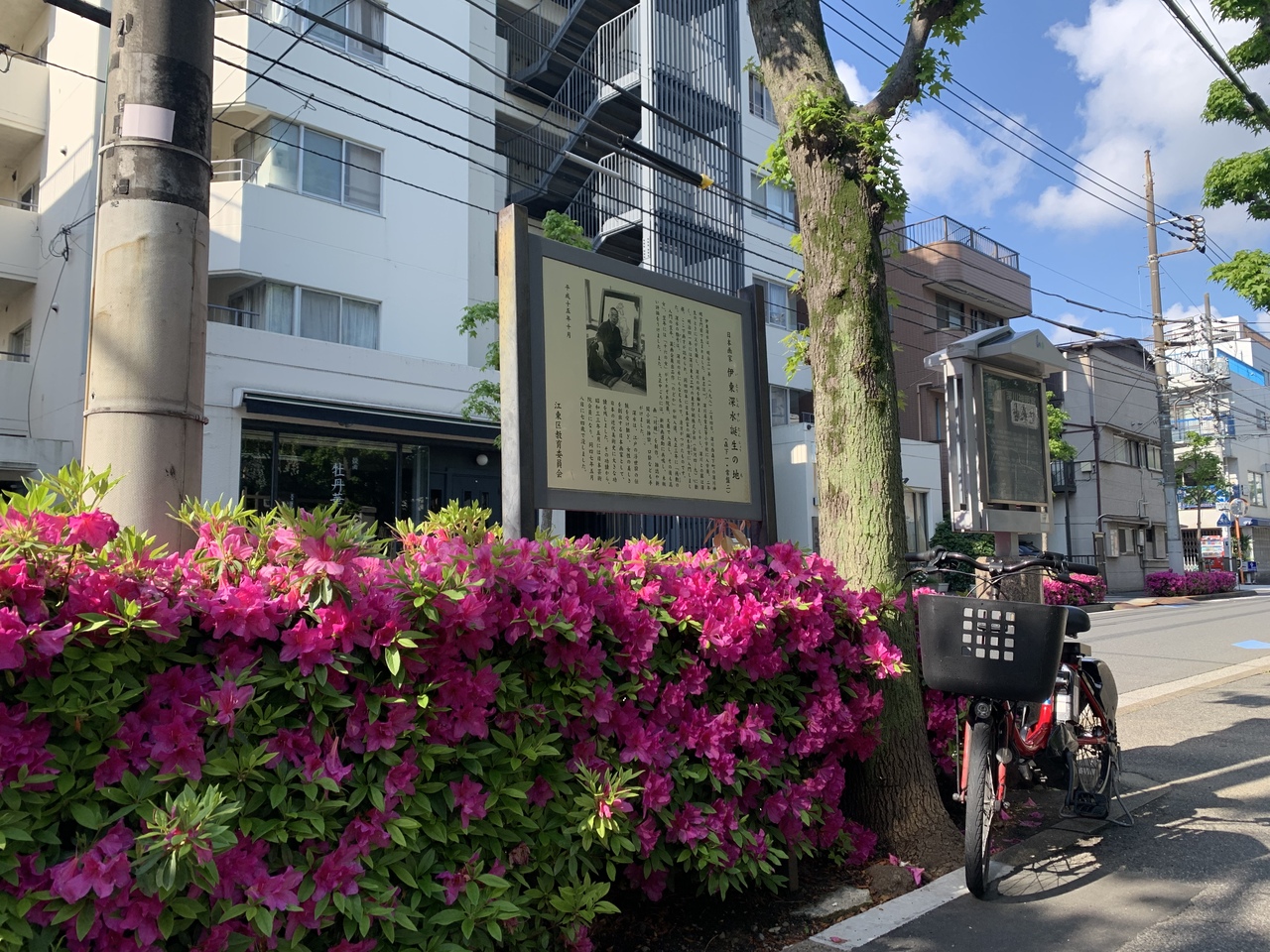 深川明神宮の目の前の歩道に説明看板が立っていました。