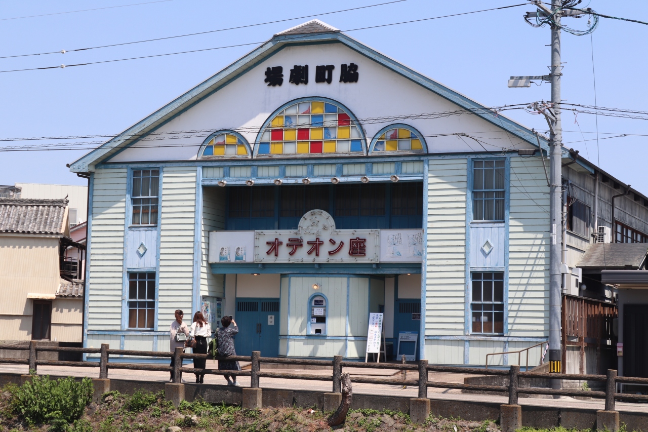 脇町の大谷川沿いに立っている見所のひとつです。名前は映画館のようですが、かつての市民の娯楽、芝居小屋です。山田洋次監督の「虹をつかむ男」のロケ地としても使われたそうです。館内も有料で見学ができるようです。