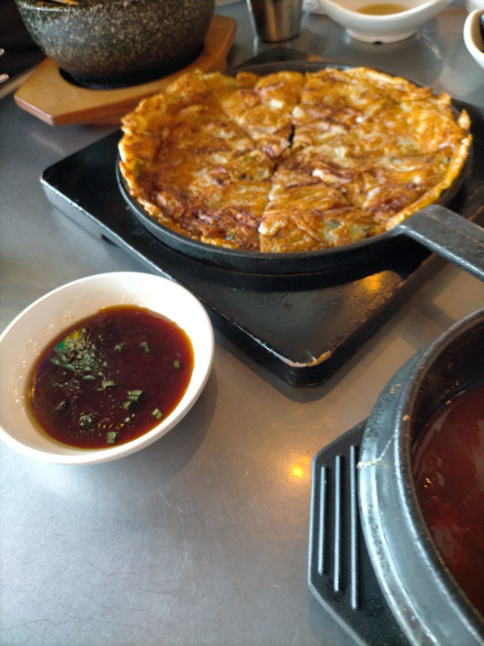 チゲの他に海鮮チヂミを食べましたが、フワフワして美味しかっです。