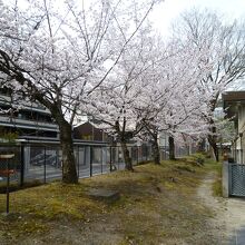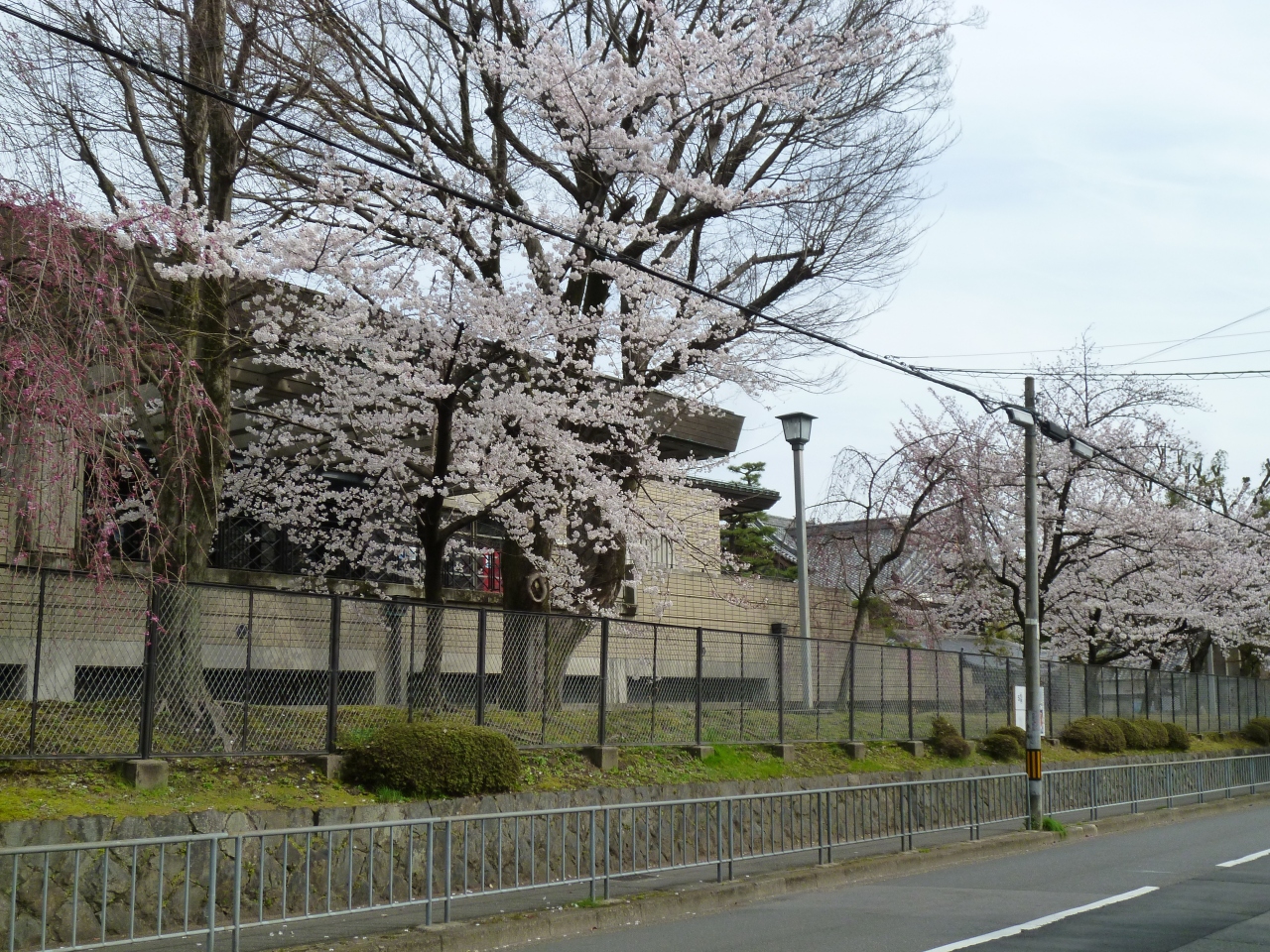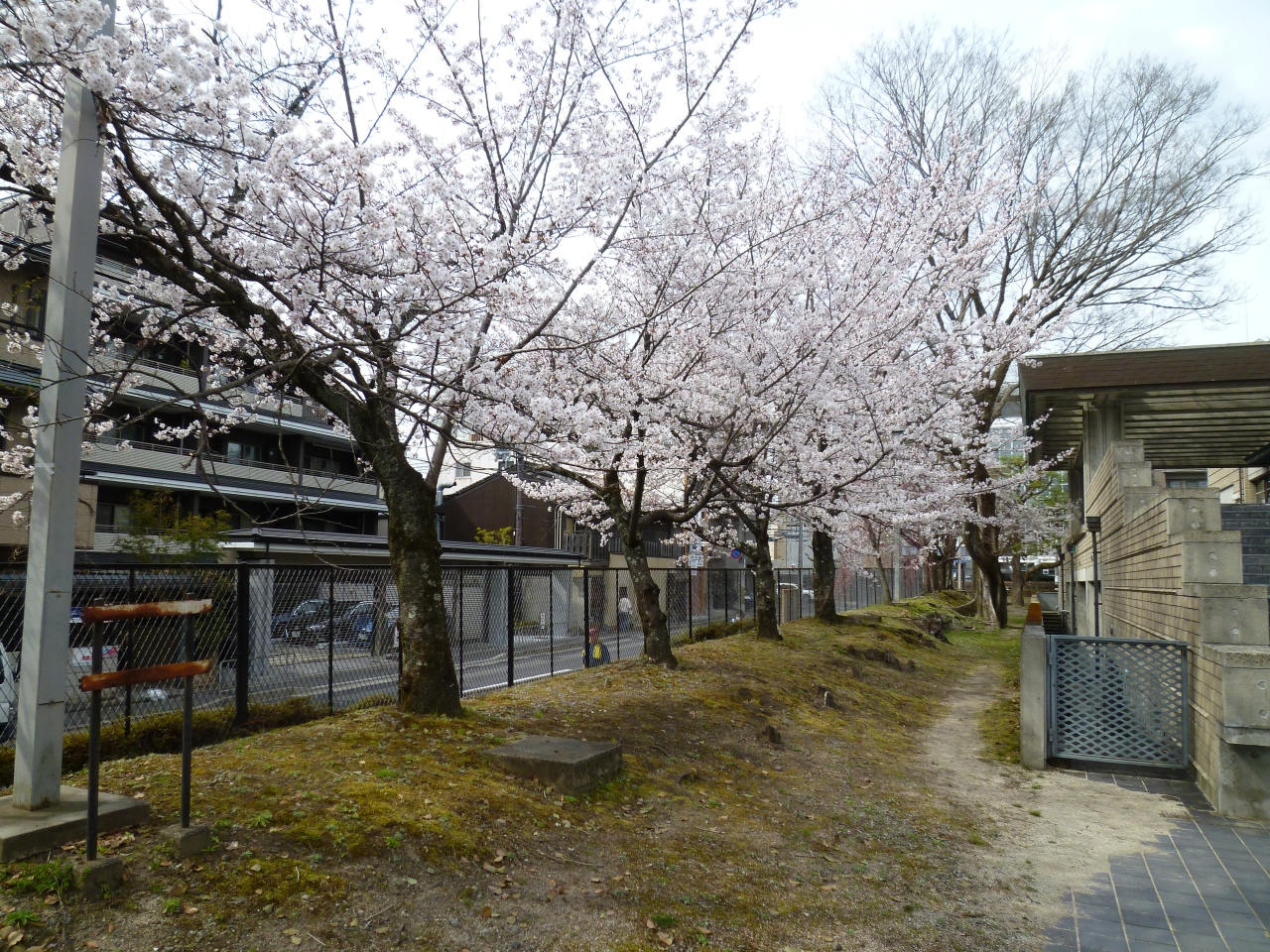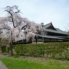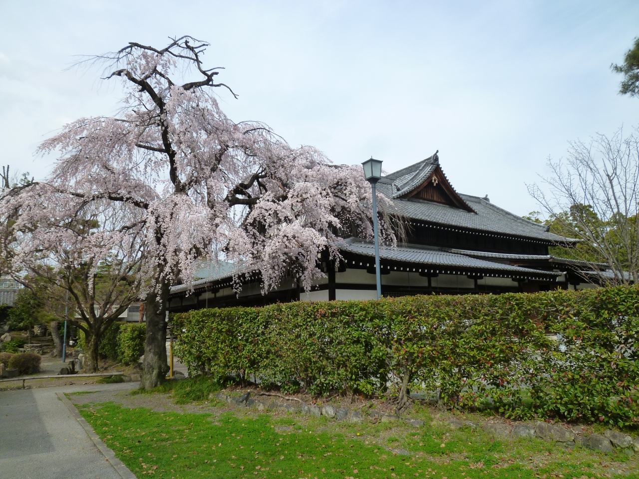 平安神宮から歩いて京都市武道センターを通りがかると、とてもすばらしい桜が目に止まりました。通り沿いにソメイヨシノがあり、奥には枝ぶりのいい大きなしだれ桜がきれいに咲いていました。こんな場所にも春になると楽しめる場所があったことを初めて知りました。建物の中からは練習中と思われる威勢のいい声が聞こえました。