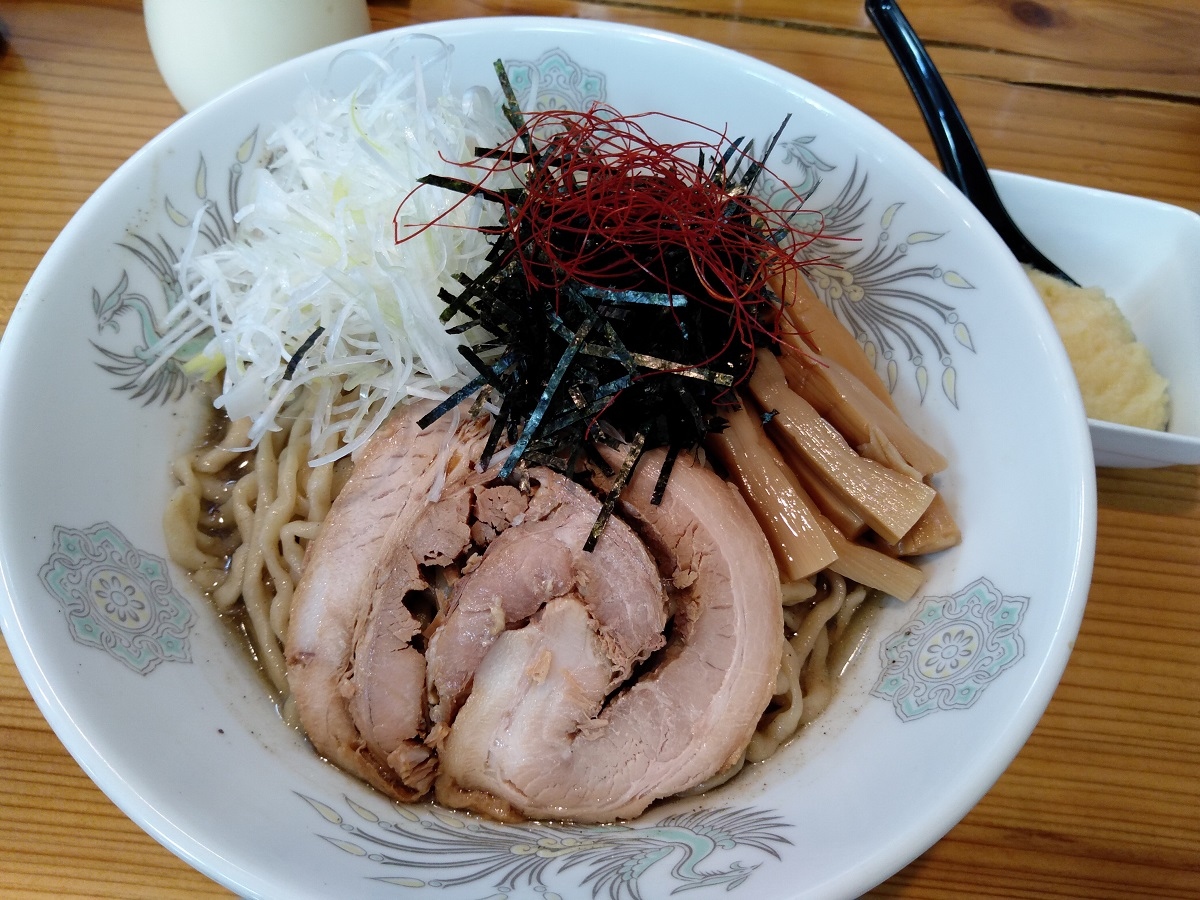 昼時はいつも行列が出来ているので、遅めのお昼に訪れる。店内は小上がり、テーブル、カウンターとあるが、一人でお邪魔したのでカウンターに座る。そして注文したのは魚介油そば。煮干しのがっつりとした味が麺に絡み、油そばらしくスープとは違う美味しい味を楽しんだ。