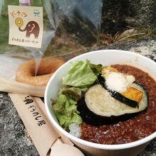 岡崎東公園で食事をするなら、この「ぞうめし屋」がおすすめです。今回は「みそ屋のキーマカレー」(税込650)を購入。ナスとかぼちゃの揚げ物がワンポイント。うまーいです。ただちょっとボリュームはないかなと思います。そしてデザートとして「ぞーナッツ」(150円)のプレーンも1個購入。おいしいですが、シンプルな普通のドーナツでした。写真付きのメニューも載っけときますので参考にして下さい。
