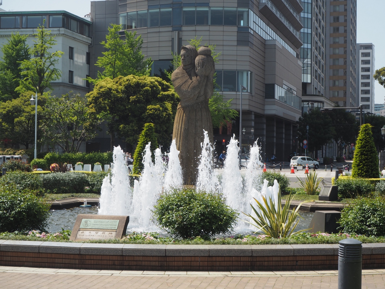 山下公園のなかほどに水の守護神像があります。像は2メートルほどの大きさで手には水瓶をかかげています。像の周りに噴水があり、その周囲には花壇があります。噴水などは公園にいいアクセントとなっています。水の守護神像は姉妹都市であるアメリカ西海岸のサンディエゴから寄贈されたものです。