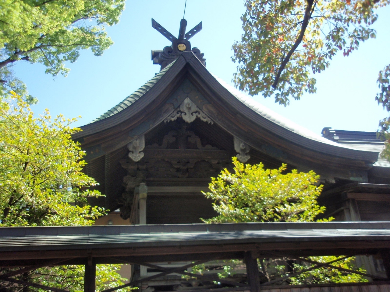 創建は1626年、主祭神 ヤマトタケルノミコトです。二世紀初め、日本武尊が当地にご陣営を設け、従将吉備武彦と大伴武日と待ち合わせたため「待つ郷」=待土(まつど)とよばれ松戸の地名がうまれたという。一の鳥居、二の鳥居を潜り、潜龍橋を渡ると北側に拝殿、その奥に本殿があります。南側には多くの境内社、神楽殿、富士塚等があります。境内社が多くあるのにびっくりしました。本殿の屋根の反り具合と軒下の彫刻には目を見張るものがあります