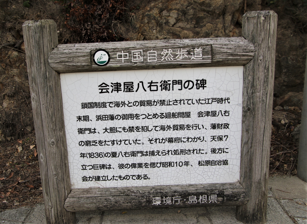 江戸時代海外との貿易で大赤字の浜田藩財政を立て直そうとした海の男会津屋八右衛門の顕彰碑です。