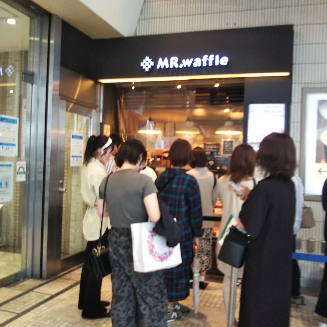 ミスターワッフルがルミネ新宿店に入っています。駅の南口改札を出て左、ルミネ2に入り通路を通り扉を出たすぐの場所にあります。休日は並んでいることが多いです。種類も幾つもあるし、やっぱり美味しいですが、イートインスペースはなくてテイクアウトだけになります。