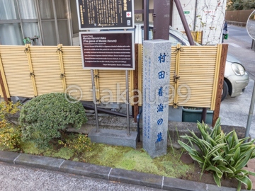 「村田春海の墓」は清澄庭園のすぐそばにあります。清澄庭園に面する通り沿いに、東京都教育委員会による説明板と石碑があります。都営地下鉄の「清澄白河駅」から歩いてすぐなのですが、観光客は誰もいませんでした。