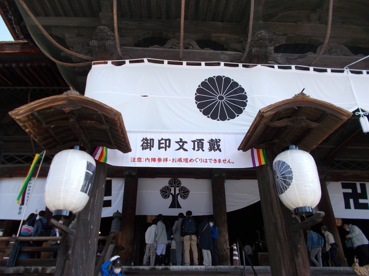 御印文頂戴は正月に行なわれていますが、ありがたいことに御開帳の時も行われています。回向柱だけでなく御印文頂戴も行うことをおすすめします。きっと極楽浄土に導いていただけるでしょう。御印文頂戴は寸志のみで、行っていただけます。