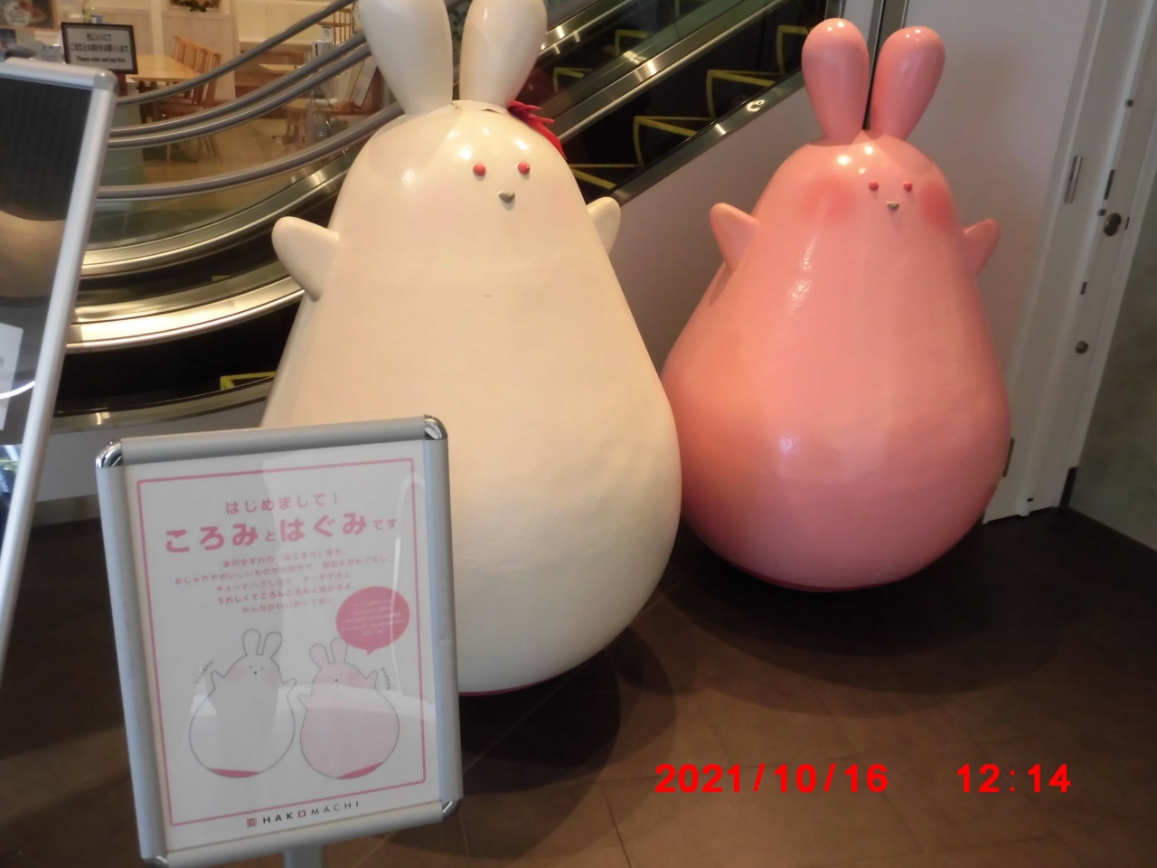 金沢市観光で立ち寄りました。かなざわはこまち(HAKOMACHI)は、近江町市場の北側、百万通りを挟んで向かい側にあるユニークな形の建物のショッピングモールでした。武蔵ヶ辻の所で斜め向かいには観光名所の「金箔きらら」もあります。館内には、不思議な形の「ころみ」と「はぐみ」人形も飾ってありました。