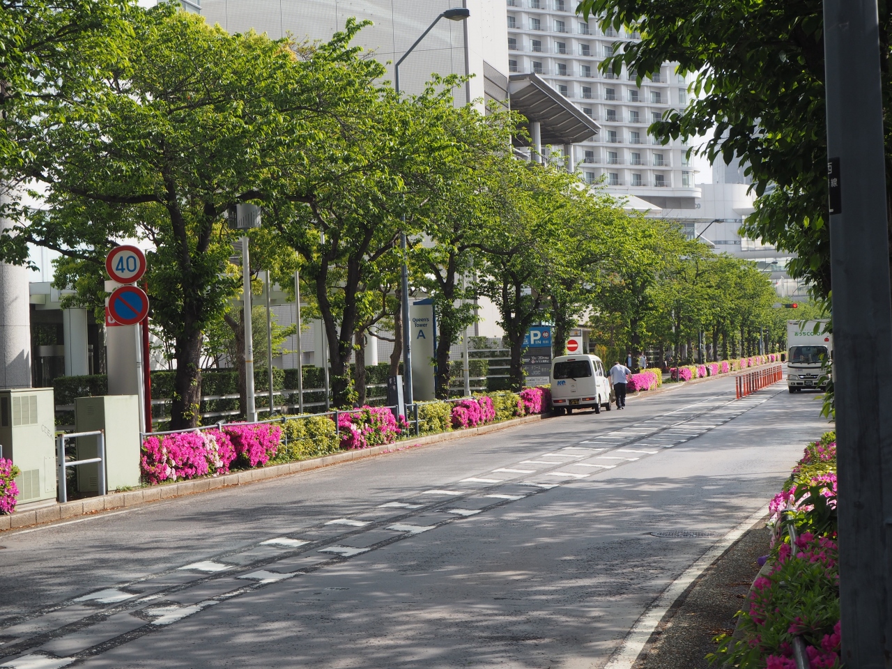 桜木町駅からすぐの横浜ランドマークタワーからパシフィコ横浜までの通りがみなとみらいさくら通りです。通りの右手には日本丸メモリアルパークで帆船の日本丸の姿も見えます。訪れた時はサクラの木は新緑で葉が生い茂っていました。歩道はサクラの木の下を歩くので、サクラの開花時期には訪れるのによさそうです。