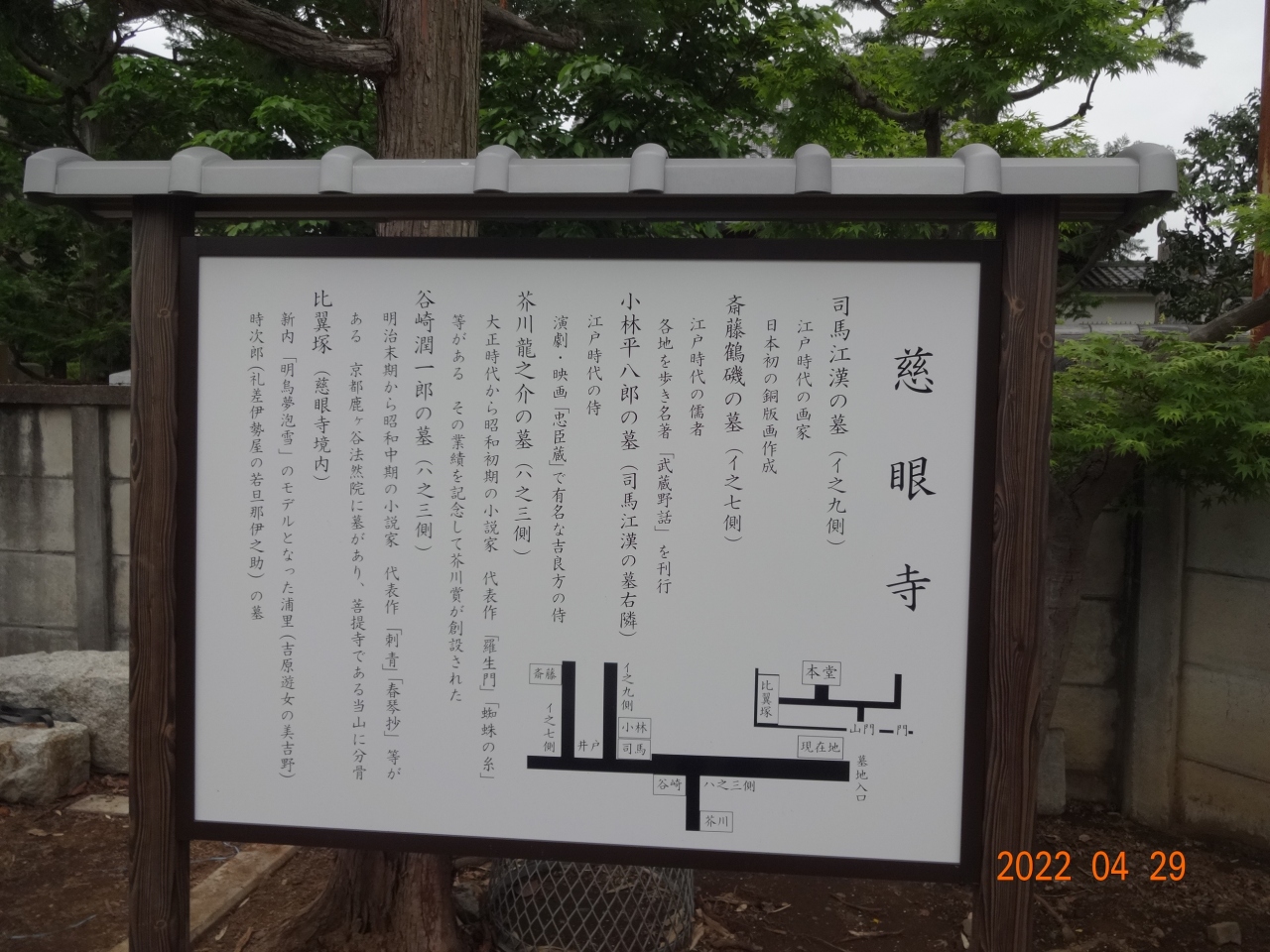 墓地には、芥川龍之介や谷崎潤一郎など複数の有名人のお墓があるそうです。