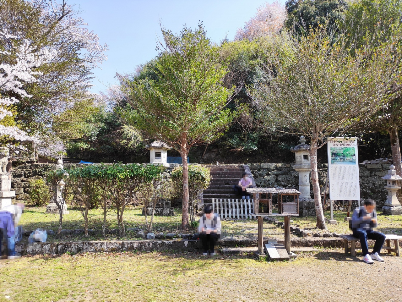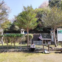 この神社にまつわる話は天智天皇の頃に遡りますので、相当の歴史があるかと思いますが、何年ながら平成に入ってから本殿は消失したそうです。いまは、坂道歩きに疲れた観光客が一休みさせていただく場所になっているようでした。天女が舞い降りたということから芸事にかかわるとことでした。