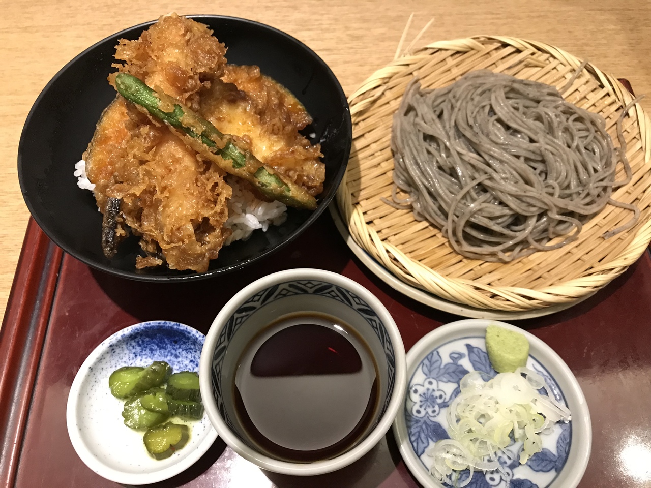 天丼と蕎麦のセットを注文。ご飯がかなり少ない。味が濃くてご飯が少なくて、天ぷらの野菜もメニューの写真より何割か差し引いた見栄えのものがでてきました。蕎麦の味も普通。