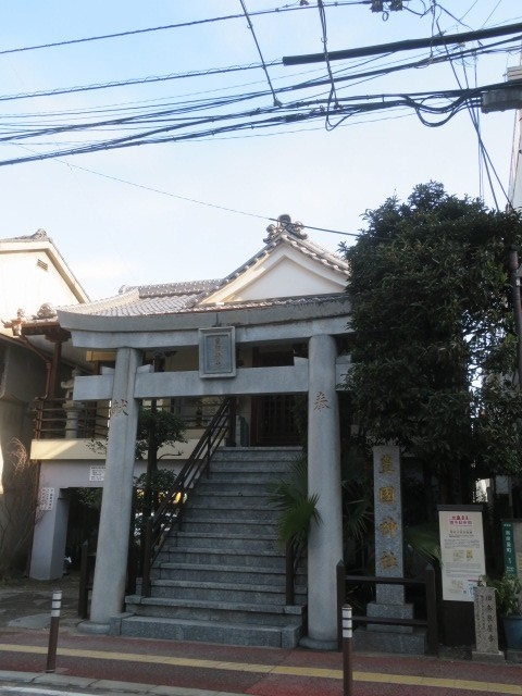 こちらは博多旧市街の観光地で、豊国神社は、神屋宗たん屋敷跡ということで、その案内板もあります。代表的な博多商人の宗たんは、豊臣秀吉に厚遇されていました。宗たんはその恩に報いるために、邸内に秀吉の霊を祭りました。これを機に明治19年に整備されたのが豊国神社です。福岡に秀吉ゆかりの神社があるとはおもいませんでしたが、意外に小さな神社です。