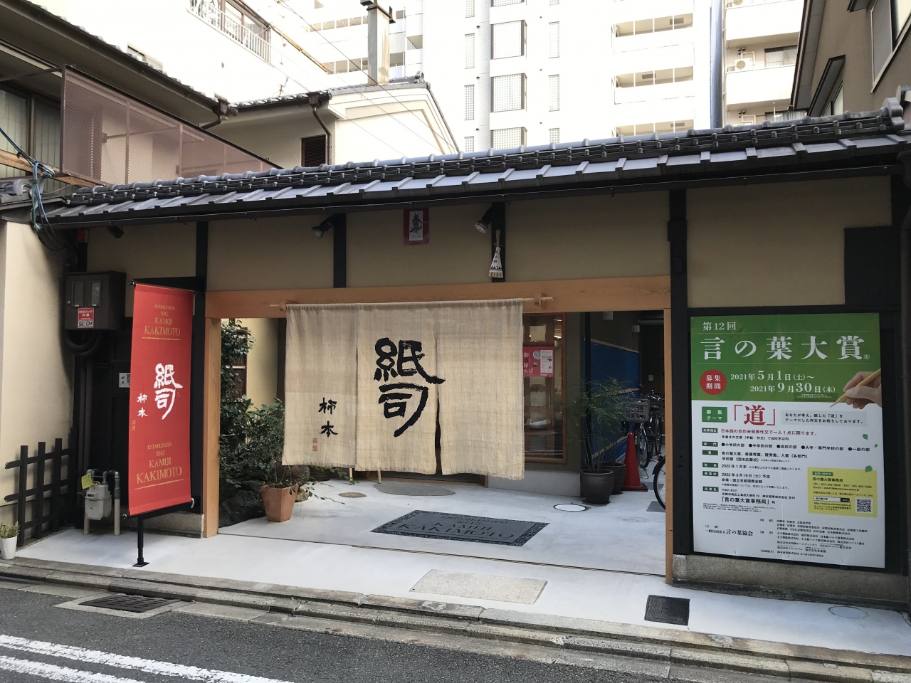 紙司 柿本は、地下鉄「京都市役所前」から南西へ徒歩4分くらいの場所にあります。現在は、本社ビル建設に伴って麩屋町三条で営業されていました。こちらのお店は、1845年に紙屋を創業され、積み重ねてきた足跡は和紙から洋紙、紙製品へと紙の可能性を追求されています。店内には、国産の生漉き紙や友禅紙など、数多くの和紙が並んでいます。京都観光の時に、一度立ち寄ってみる価値のあるお店です。友禅紙などはめったに見ることのできない素晴らしい紙でした。