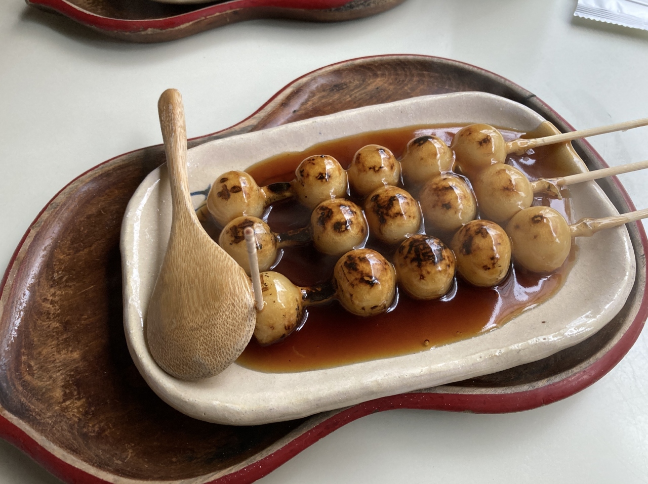 みたらし団子は3本で450円。お茶はサービスでついてきました!一粒一粒が小ぶりなみたらし団子はぱくぱくすぐ食べれちゃう。あまじょっぱいタレがよく絡んでいて、ちょっとしたおやつにぴったりな一品でした!一緒にいった母は以前テイクアウトで食べたことがあったようですがやはり店舗で食べた方が柔らかいまま食べられるのでおいしかったとのこと。ちょっと待っても店内で食べる価値ありますね。
