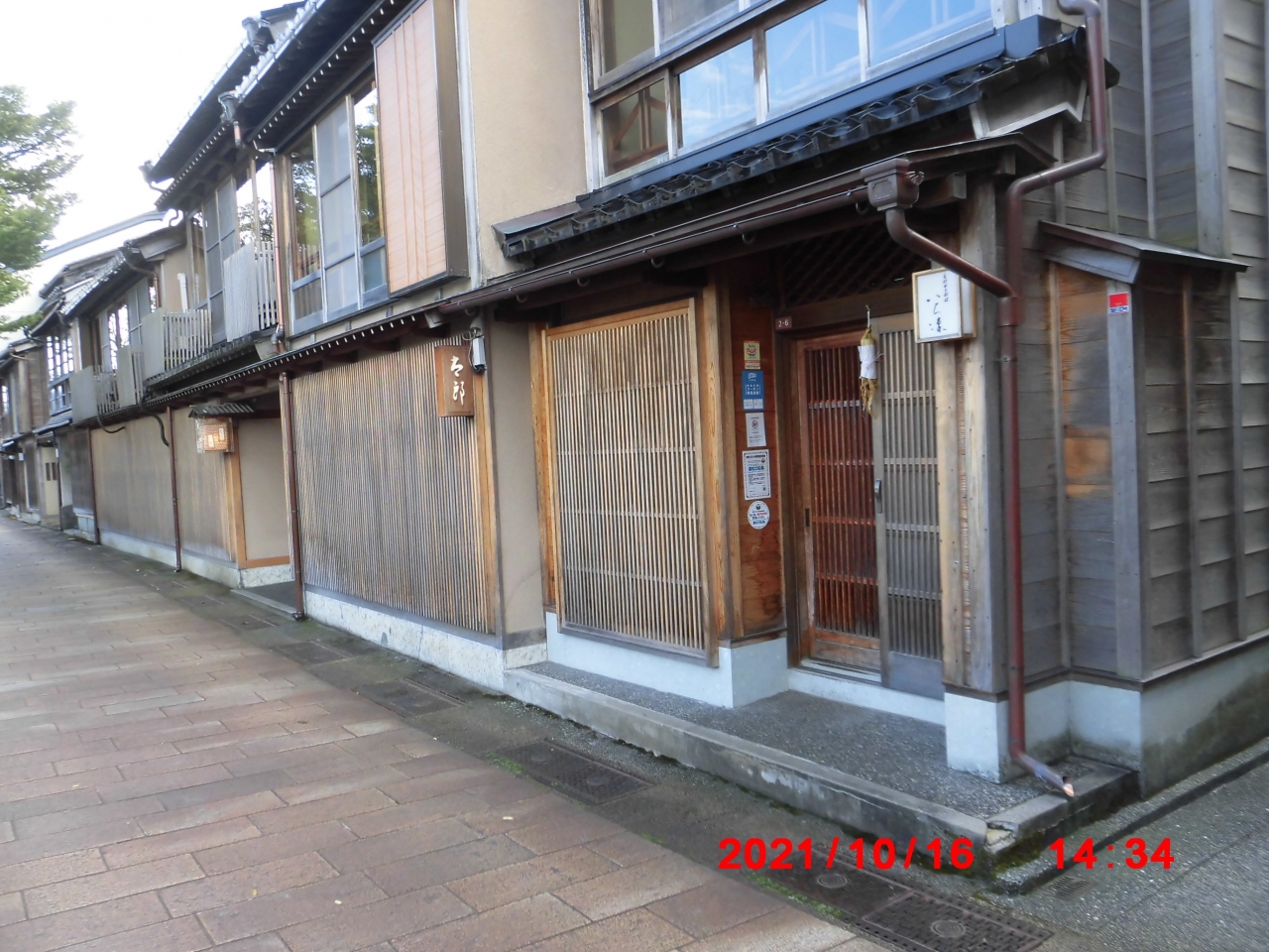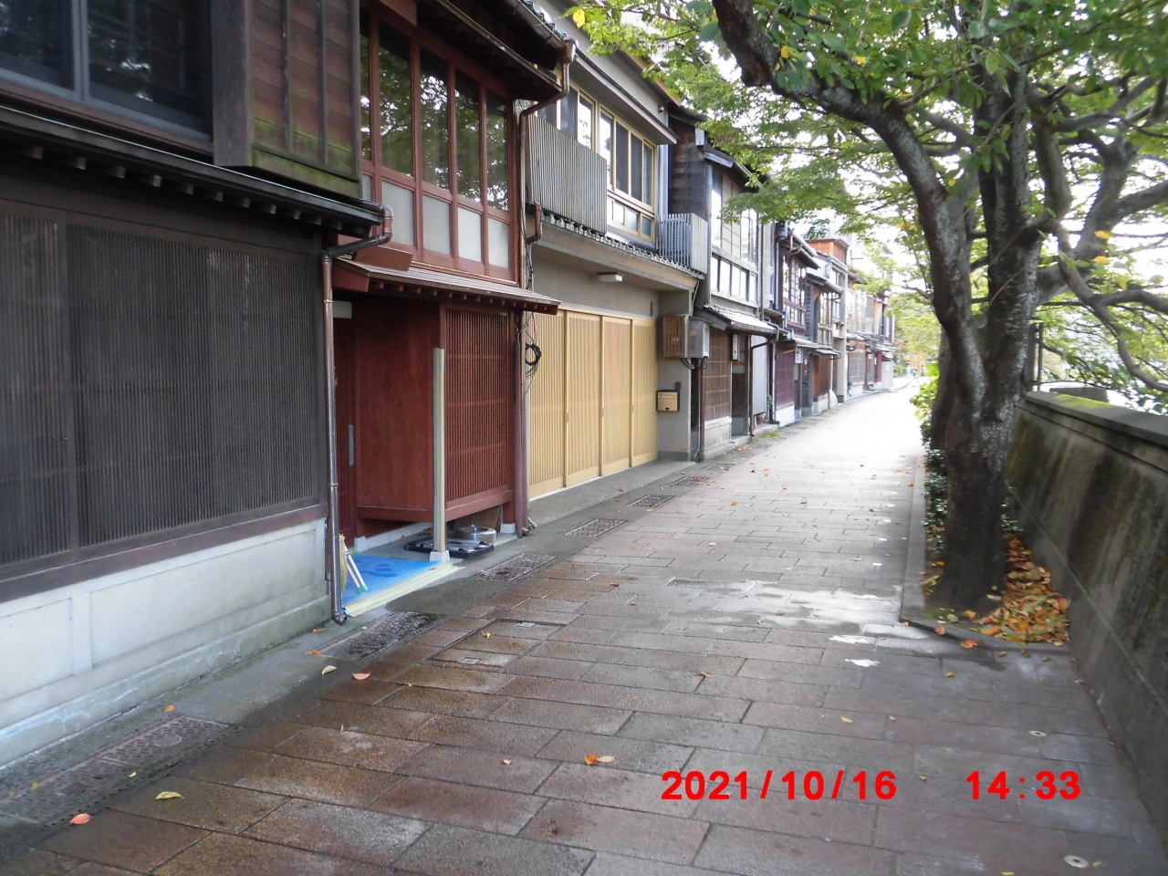 金沢市観光で立ち寄りました。主計町茶屋街の裏手はかなりの急勾配になっています。主計町茶屋街とその裏手にある下新町(しもしんちょう)の間には二つの石段坂があり、暗がり坂・あかり坂と呼ばれ、茶屋街で働く人たちの近道だそうです。主計町茶屋街は昼間は静かで人が住んでいないような雰囲気でした。