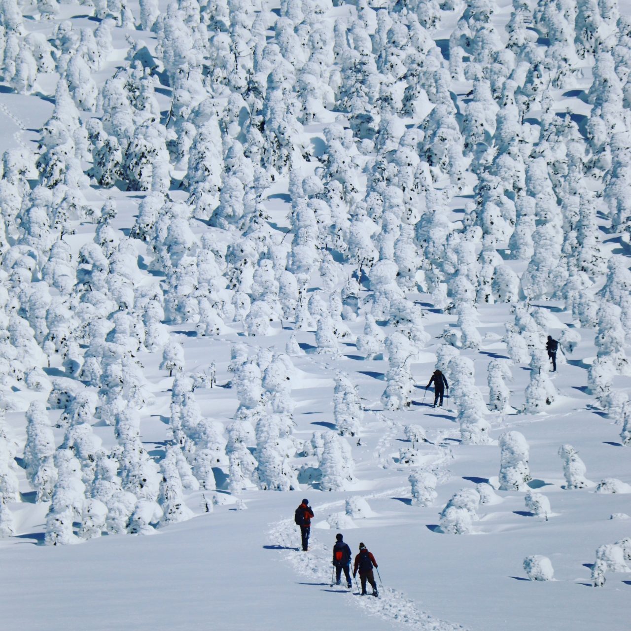 スノートレッキングには初級者から上級者用まで様々なルートがありますが、西吾妻山は初級者レベルでありながらも、スノーモンスターが立ち並ぶ樹氷原を思う存分歩くことのできる場所で、そのアクセスも比較的簡単で、グランデコ・スキー・リゾートのゴンドラを利用してアプローチします。