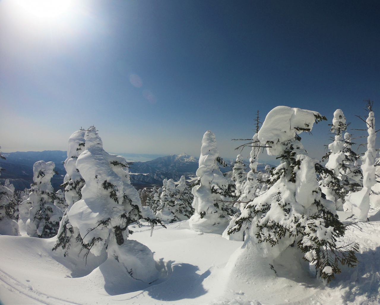 スノーモンスター達のサイズは蔵王などと比較したら小さめでリトル・スノーモンスターとも言われますが、一面の樹氷原は圧巻で、その中を歩くのは楽しいですよ。