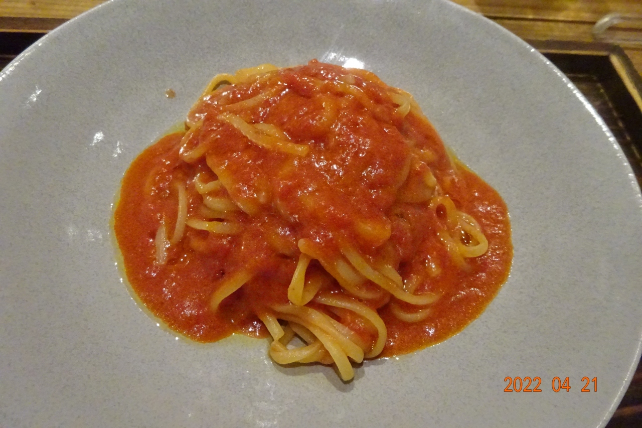 北山駅から北大路駅方向に戻った半木の道近くのパスタ専門店。以前の情報でも結構割高でしたが、さらに値上がりしていました。ランチのパスタセットはパスタ、ミニサラダ、ミニスープ、ジャガイモ入りフォッカッチャ。日替わりかポモドーロ(トマト)パスタを選べば、ベースの1400円、グレードアップしたソースを選べば、それぞれ内容に応じた料金が加算されるシステムです。パスタ以外はどれも少量なので、このお値段なら、最低限ミニデザート、欲を言えばドリンクも付けてもらっても良いという印象。パスタもソースも美味しいけれど、CPを考えると・・・という感じでした。
