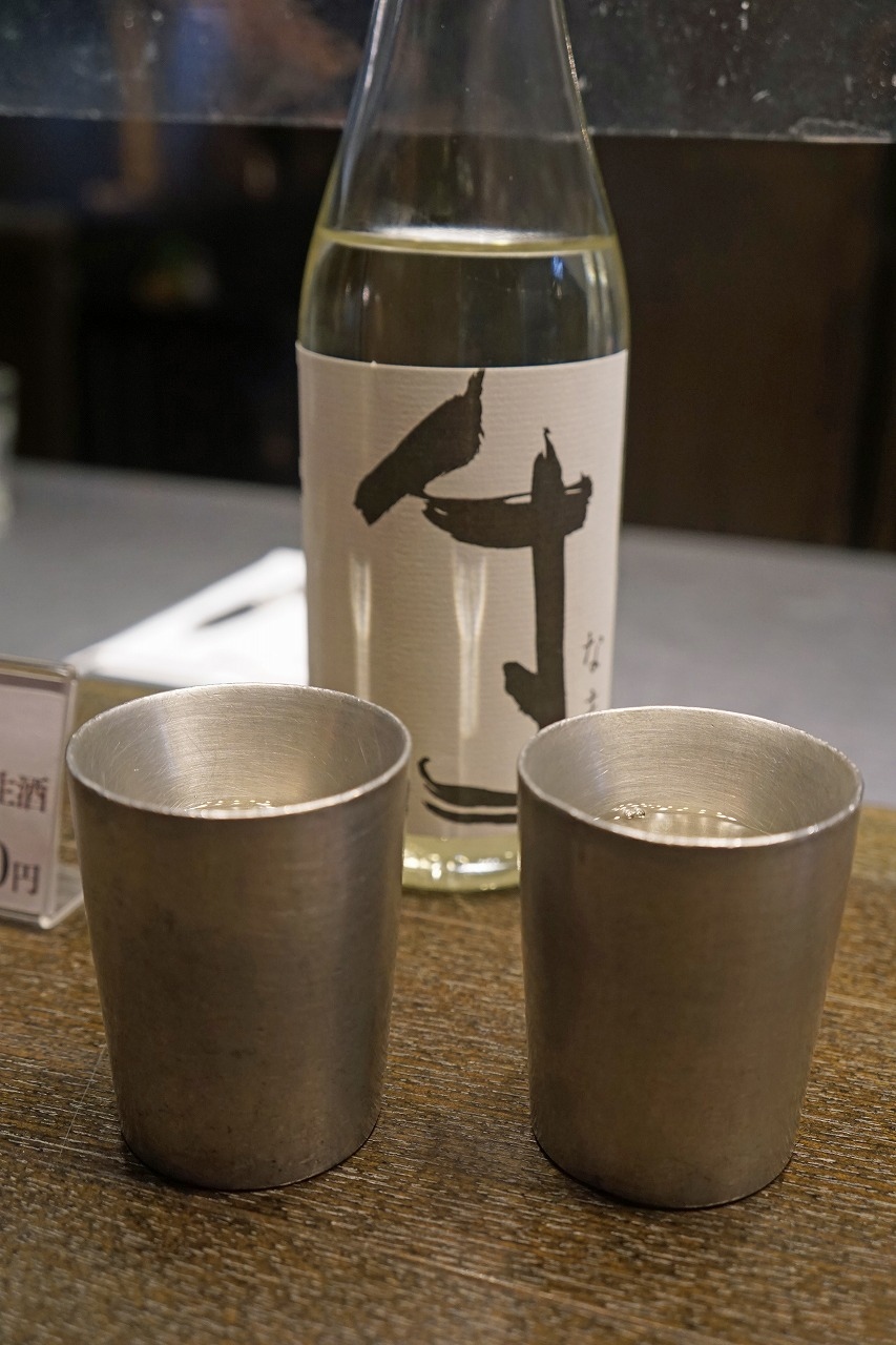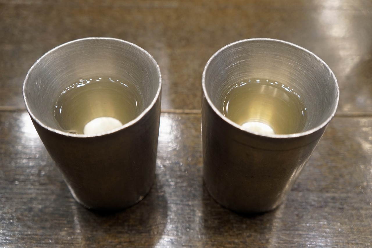 「蔵部」でお昼をいただいた後に北斎館へ行き、こちらに立ち寄りました。販売スペースの奥に試飲のカウンターがあったので真っすぐそちらに進みます。他にお客さんがいなかったのでカウンターの女性が向かい淹れてくれます。平日の午後でガラガラなのかと思いましたが、前の日は混雑して忙しかったそうです。「今日は珍しいほど空いているのでごゆっくり。」とすすめられます。試飲は有料ですが、お値段は手ごろなのも嬉しいです。コロナ禍ということもあって回し飲みは禁止になっていますが、1ショットを2つのグラスに分けていただけたので妻と同じ種類のお酒を飲むことが出来ました。の見比べる前にお水をお願いしたら冷蔵庫にあった仕込みで使っている冷たいお水をいただけました。ショットグラスは錫製のもので、重たいですがキンキンに冷えていてお酒も温まりません。つまみが品切れだったのが残念ですがメニュー表のお酒を片っ端にいただきました。この時期だけというノンアルコールの甘酒も美味しかったです。店頭では売っていないというのが残念でした。帰りには美味しかった糯米の純米酒を買い求めました。楽しい時間が過ごせました。