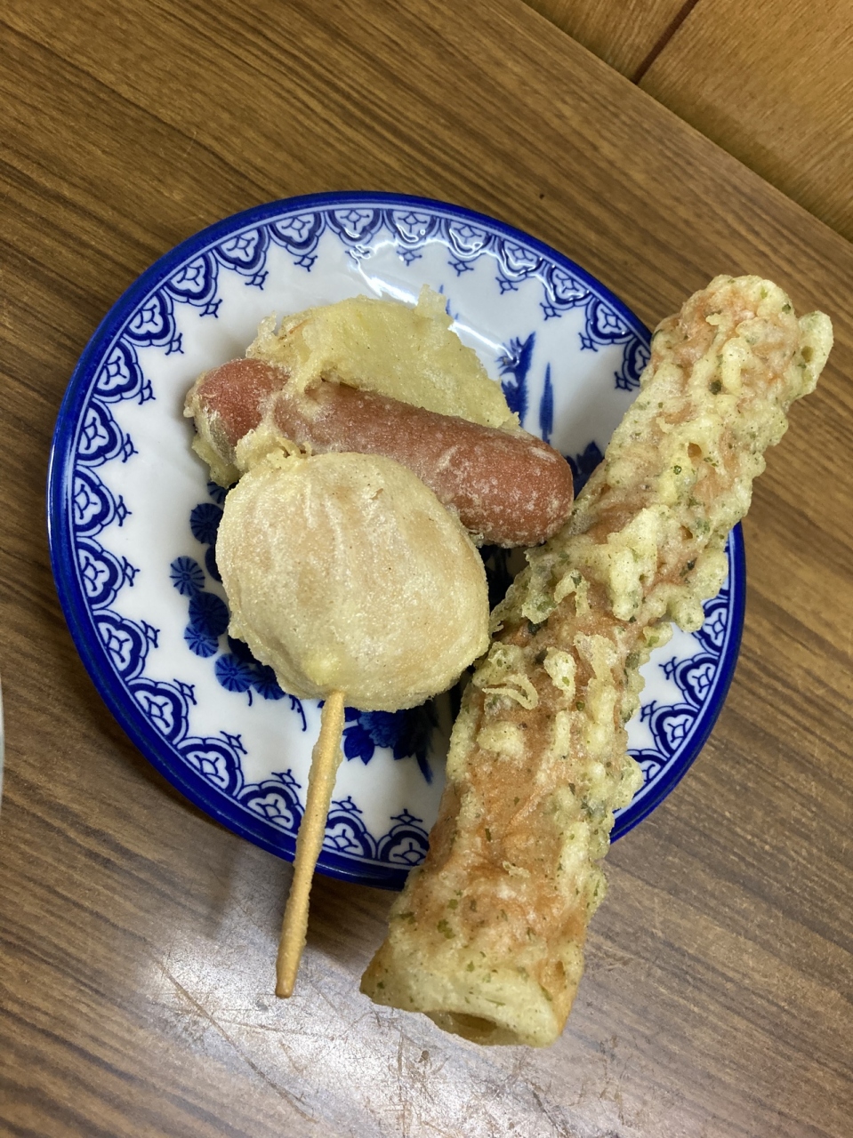 麺は、細麺ながらももっちりしたもの。出汁は、透き通った黄金色ですが、味はしっかりしています。煮干しを使わず、昆布と節のみの旨味が凝縮されたもので雑味はありません。長方形のケースに入れられた天ぷら類は全て100円。ウインナーと玉ねぎの串刺しの天ぷらを一つ食べましたが、そのままでもうどんに入れてもよし。持ち帰る地元のお客さんも結構いました。昔ながらの讃岐うどんが味わえる、また行きたくなるうどん店です。
