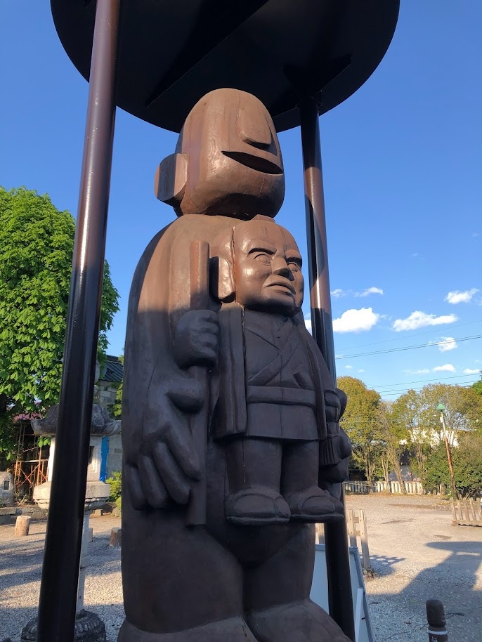 道の駅ニコニコ本陣から下今市駅に歩いて戻る途中にあったのでよってみました。入ってすぐに巨大な像が2体ありびっくり。尊徳来福像というもので樹齢212年杉の巨木から作られているそうです。猫も何匹かいてのんびりしてました。お賽銭箱の上にも花が飾ってあり、癒されます。