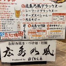広島市の繁華街にたくさんあるばくだん屋さんが監修された店舗みたいです。エキエ店内は、1店舗が狭いお店が多いのですが、こちらは大きなお店なので、空席があり、お店の外でメニューを見ていたら店員さんが声をかけてくれましたので、すぐに入店しました。