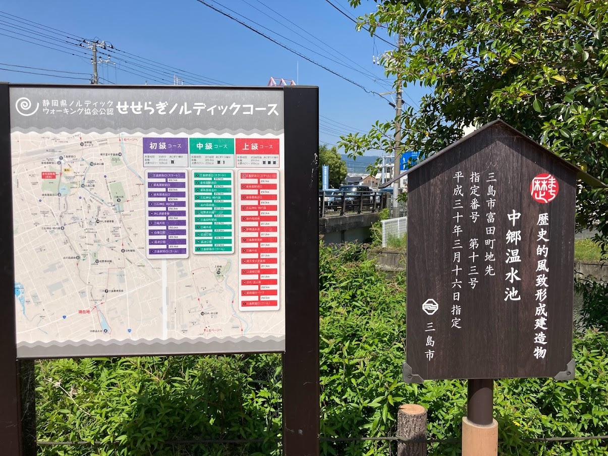 ウォーキングのコースの地図の看板もあり、体力や時間に合わせて参考にするのもいいですね。