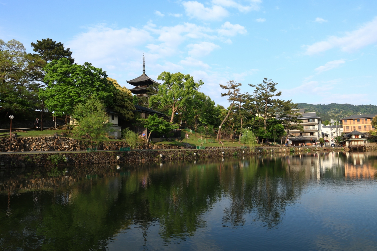 こちらは元からあった池ではなくて、明治時代に興福寺の五重塔が最も美しく見えるような場所にということで、計算されて作られた池ということです。