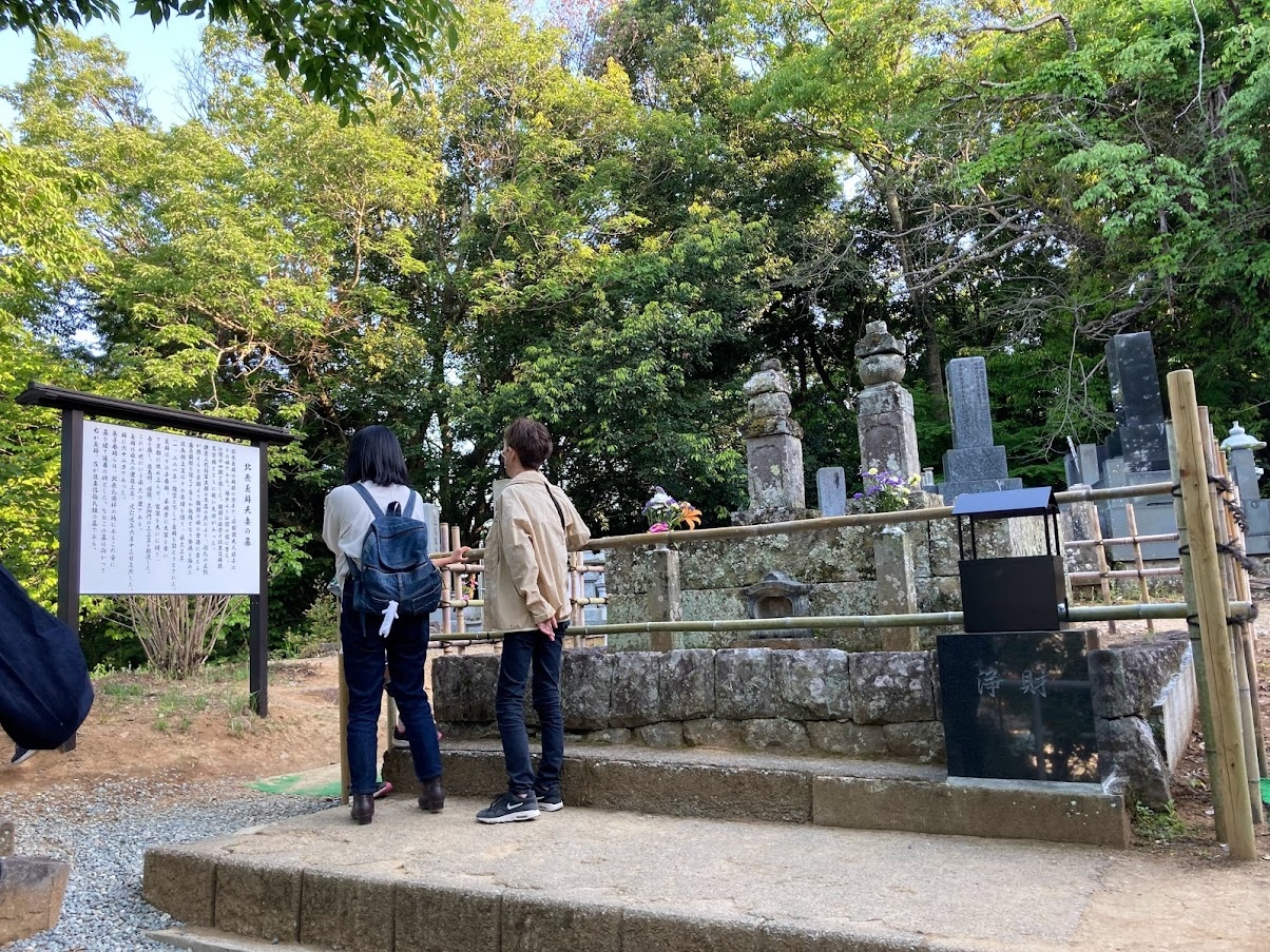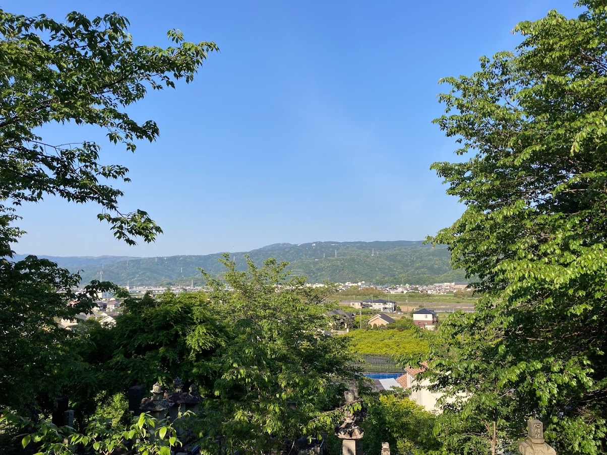 現在の大河ドラマの主役・北条義時が創建したという北条寺の丘の上の高台に北条義時夫婦のお墓があります。高台からの景色もいろんな思いが感じられます。