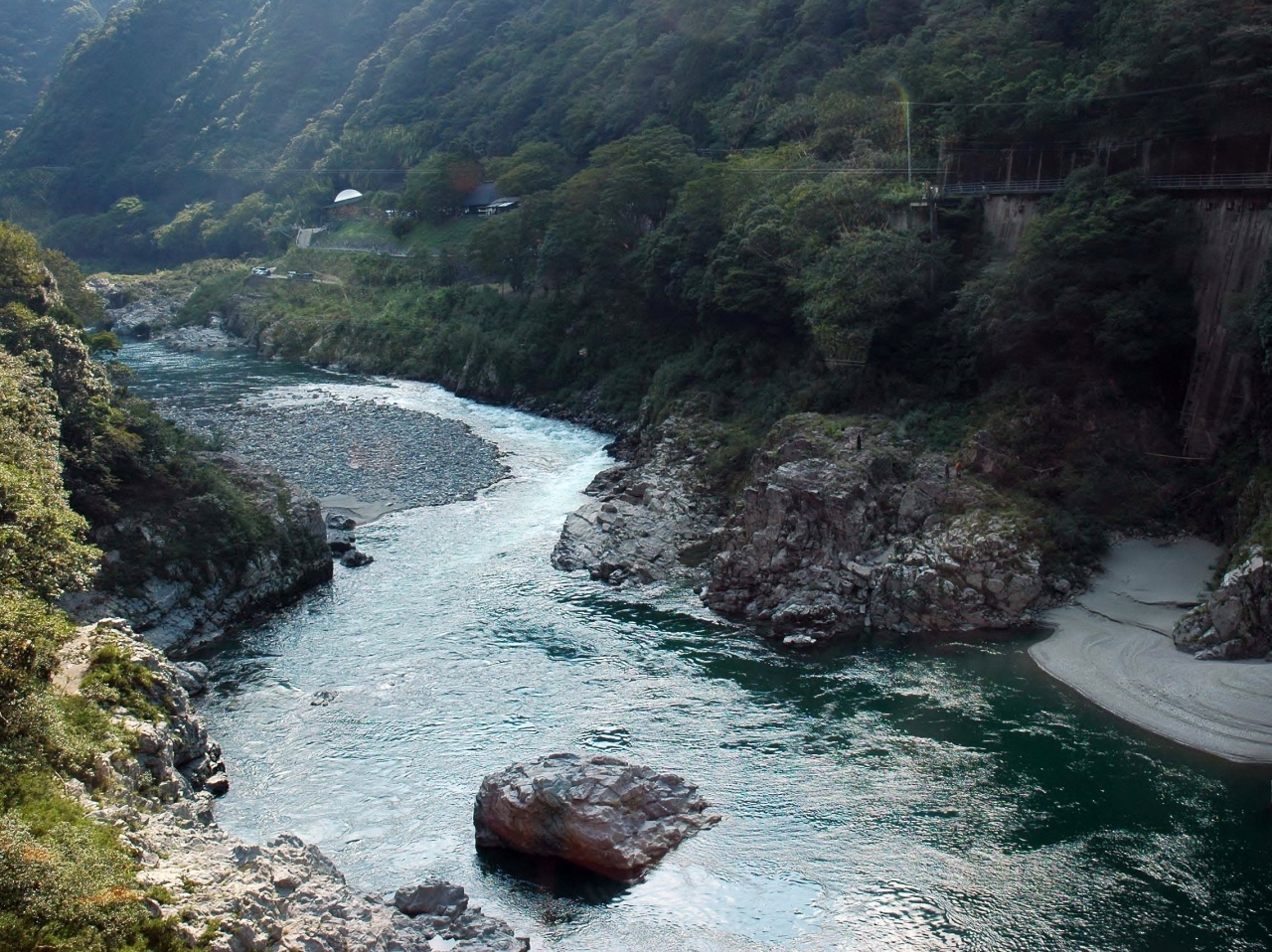 なかなか愉快なネーミングだが、吉野川の激流に沿った景勝地が並び、四国を代表する観光地。温泉やグルメの名物もあり、ここから四国各地に訪れることも可能。河原のない急流は、舟くだりがおすすめ。大歩危のほうがアクセスがよく、JR大歩危駅まで送迎してくれる業者もいます。