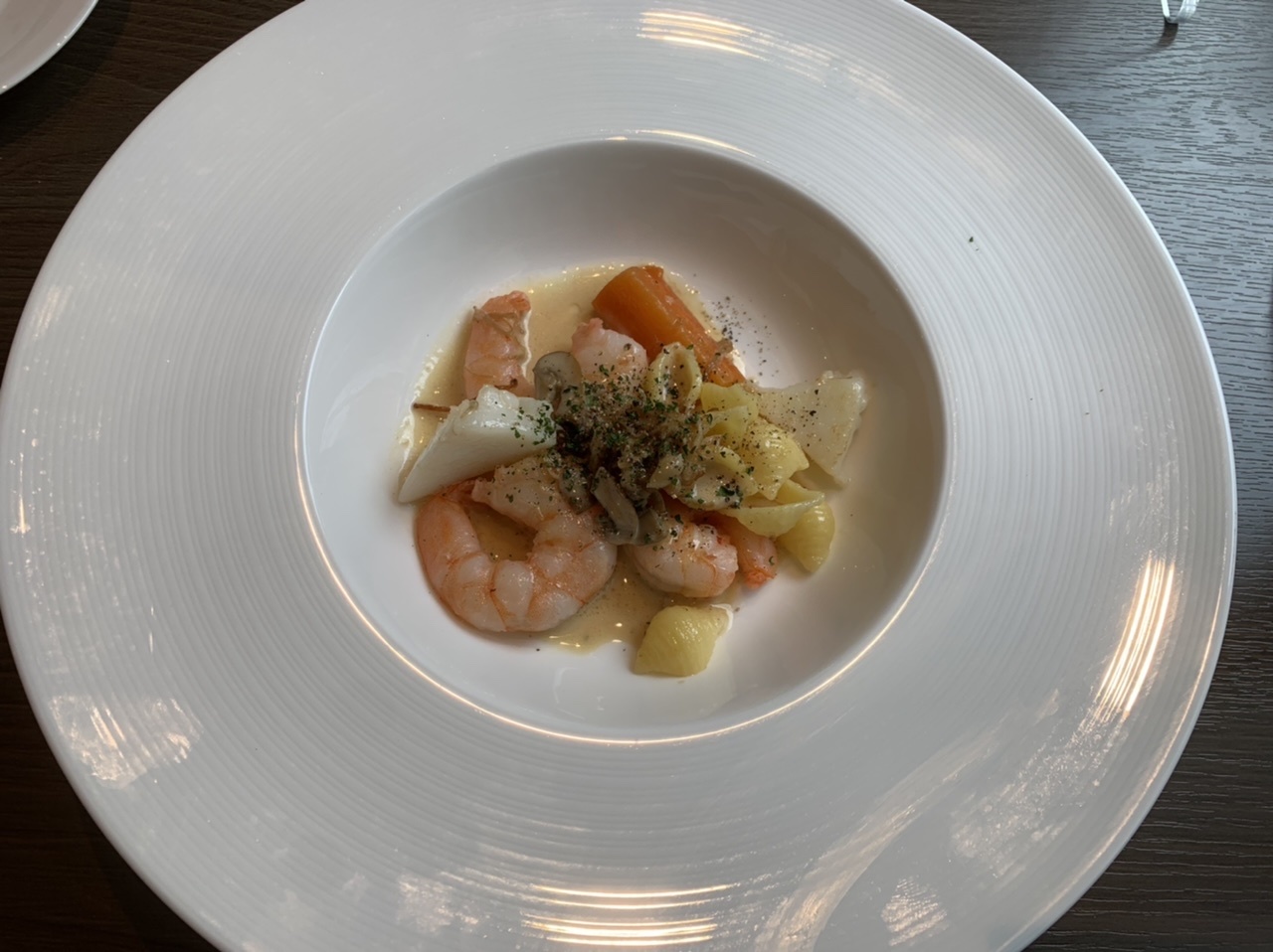前菜のパテが美味しかったです。メインはシーフードを選びましたが、値段の割には量が少なくてパッとしないかな。デザートはクレープをいただきました。