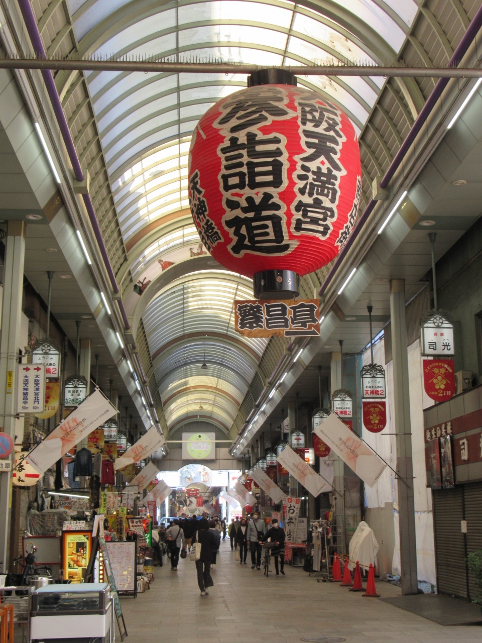 天満青物市場は1931年に無くなりましたが、時と共にお店の種類が変わって現在でもとても賑わっています。