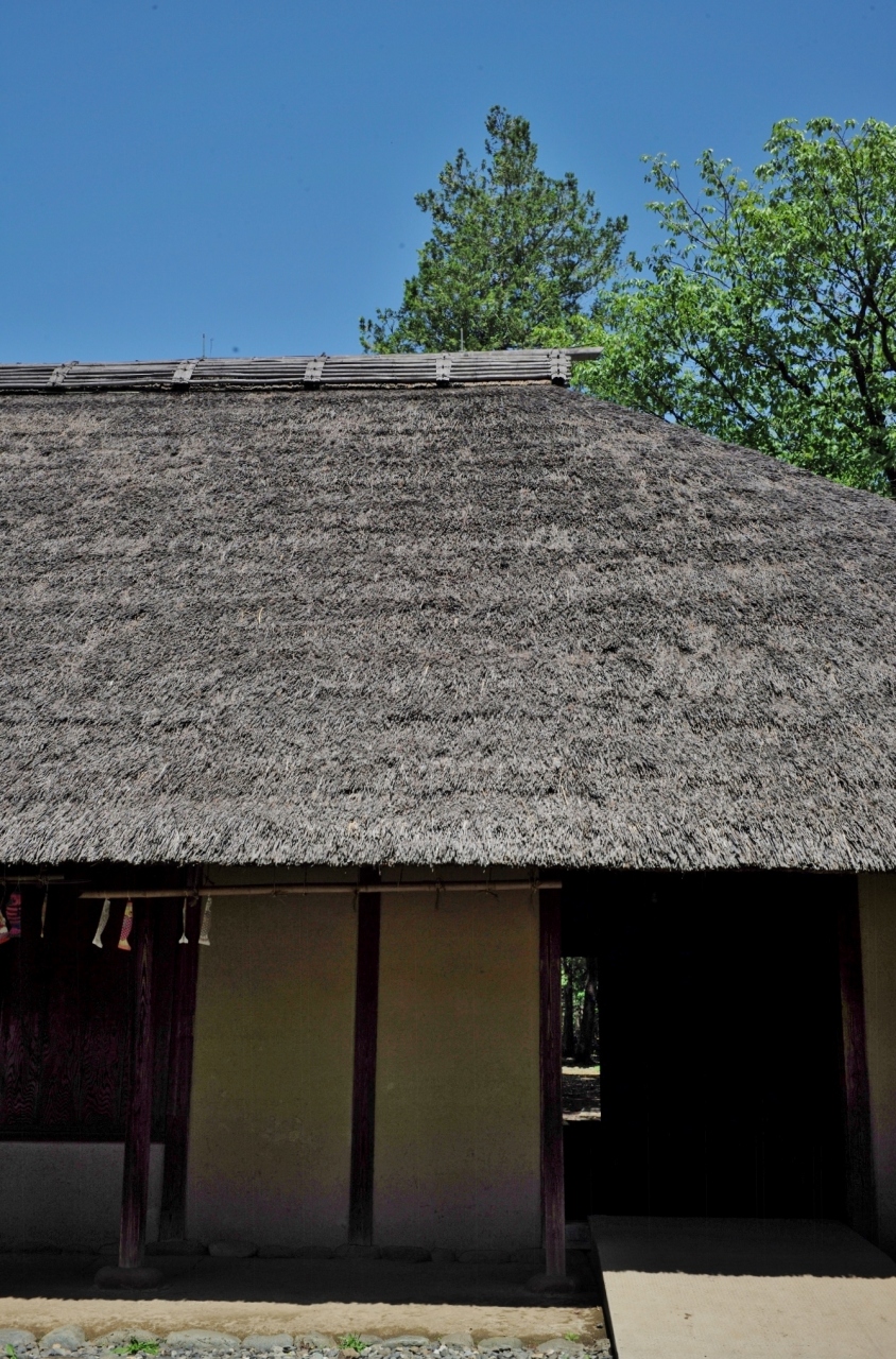 江戸東京たてもの園の西ゾーンの奥の方には数軒の茅葺屋根の建物が復元されています