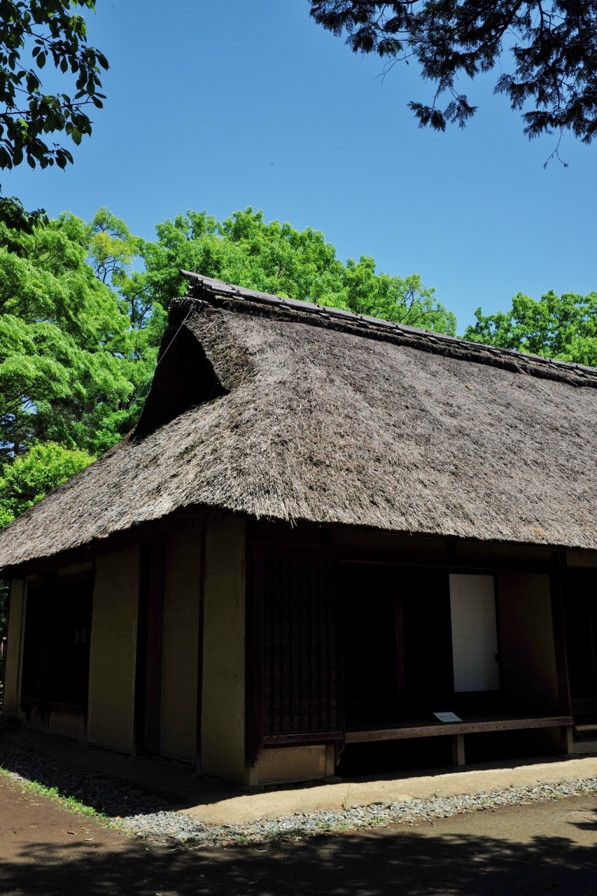 江戸東京たてもの園の西ゾーンには数軒の茅葺屋根の建物が復元されています