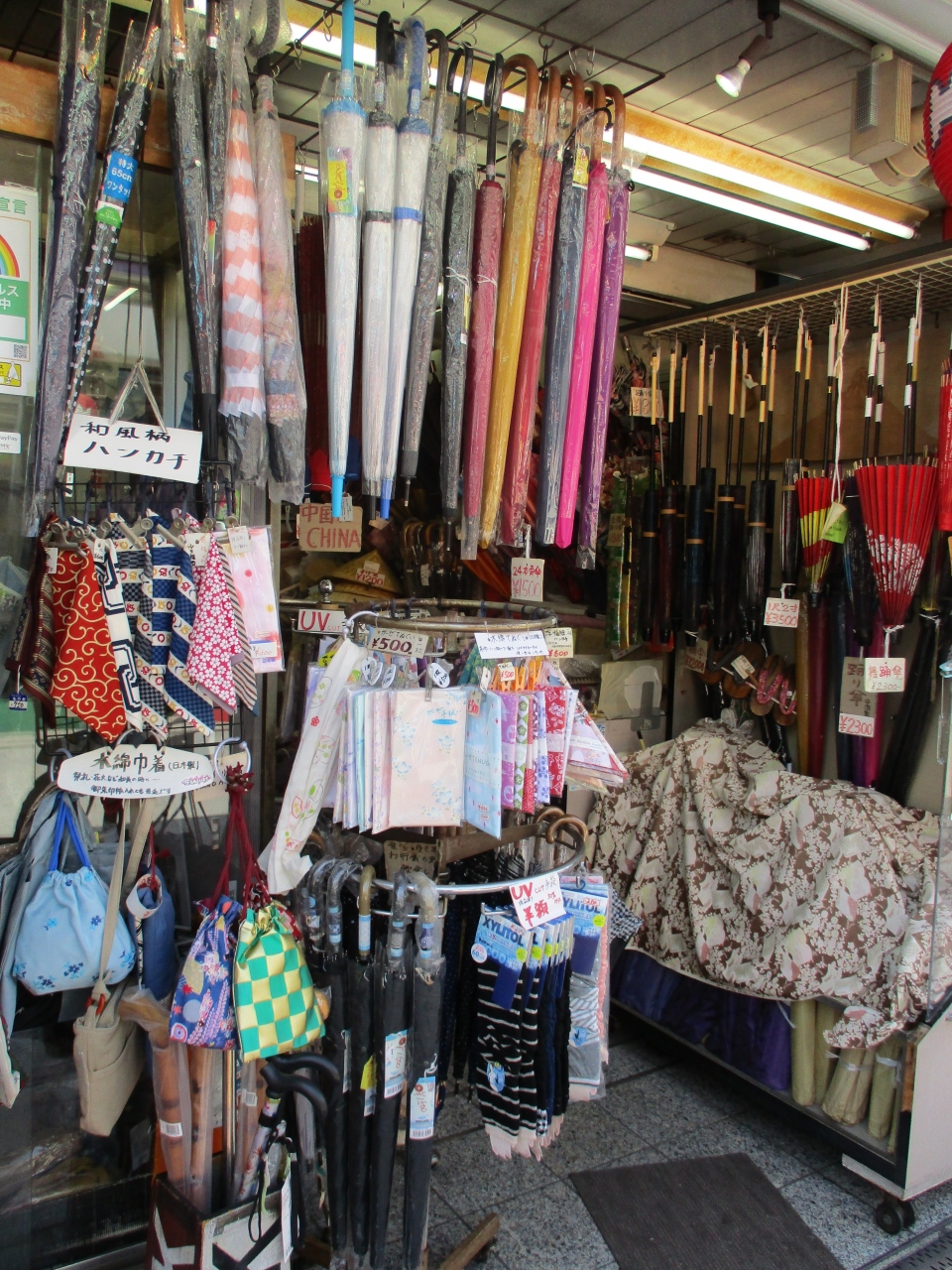 浅草寺にお参りに行った途中で、仲見世通りに傘のお店があるのに気が付きました。店内にはいろいろな種類も傘が吊るされていました。番傘は踊りの舞台用などもあって浅草らしいと思いました。お値段のそれなりで、サイズが寸表示だったのが面白かったです。