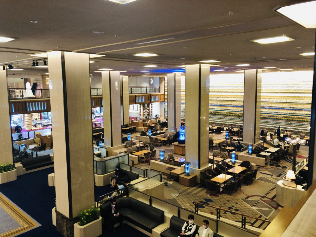 ロビーの椅子(ソファ)はラウンジ沿いに設置されています。