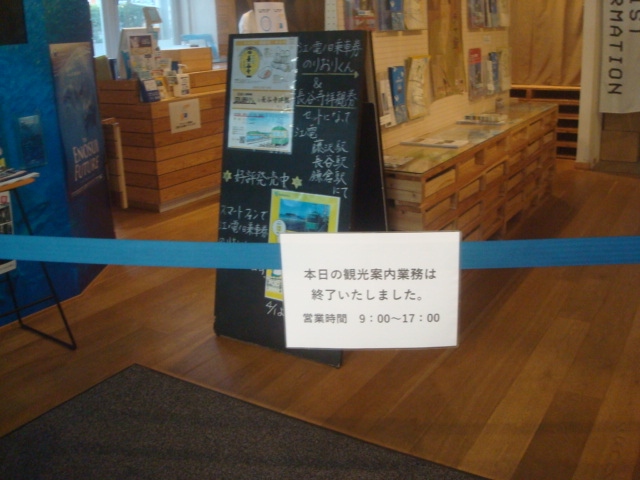 夕方5時過ぎに行ったところ、観光案内業務は17時までと書かれておりロープが張られていて、観光案内の部分には入れませんでした。パンフレットが置かれているコーナーにも入れませんでした。土産売場は17時過ぎても開いていました。