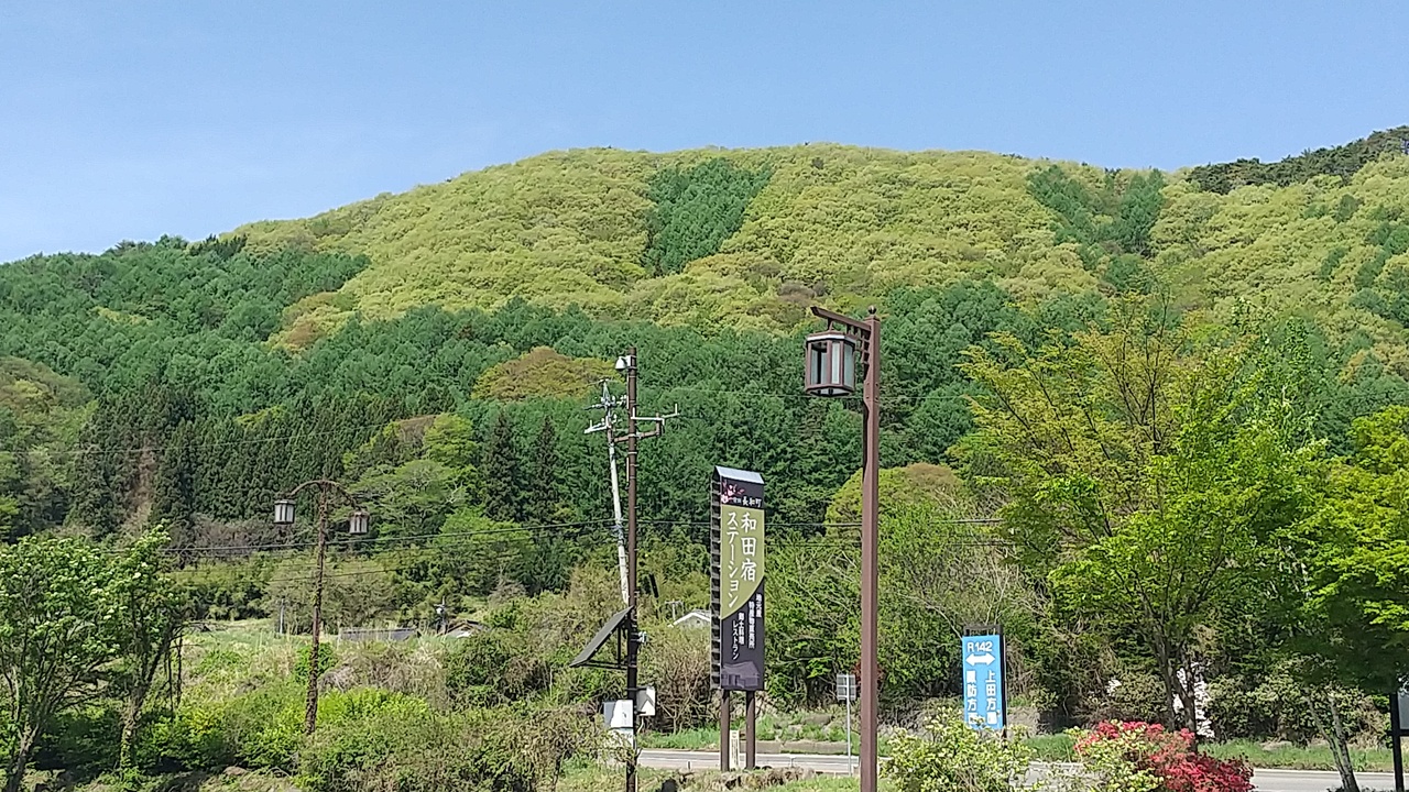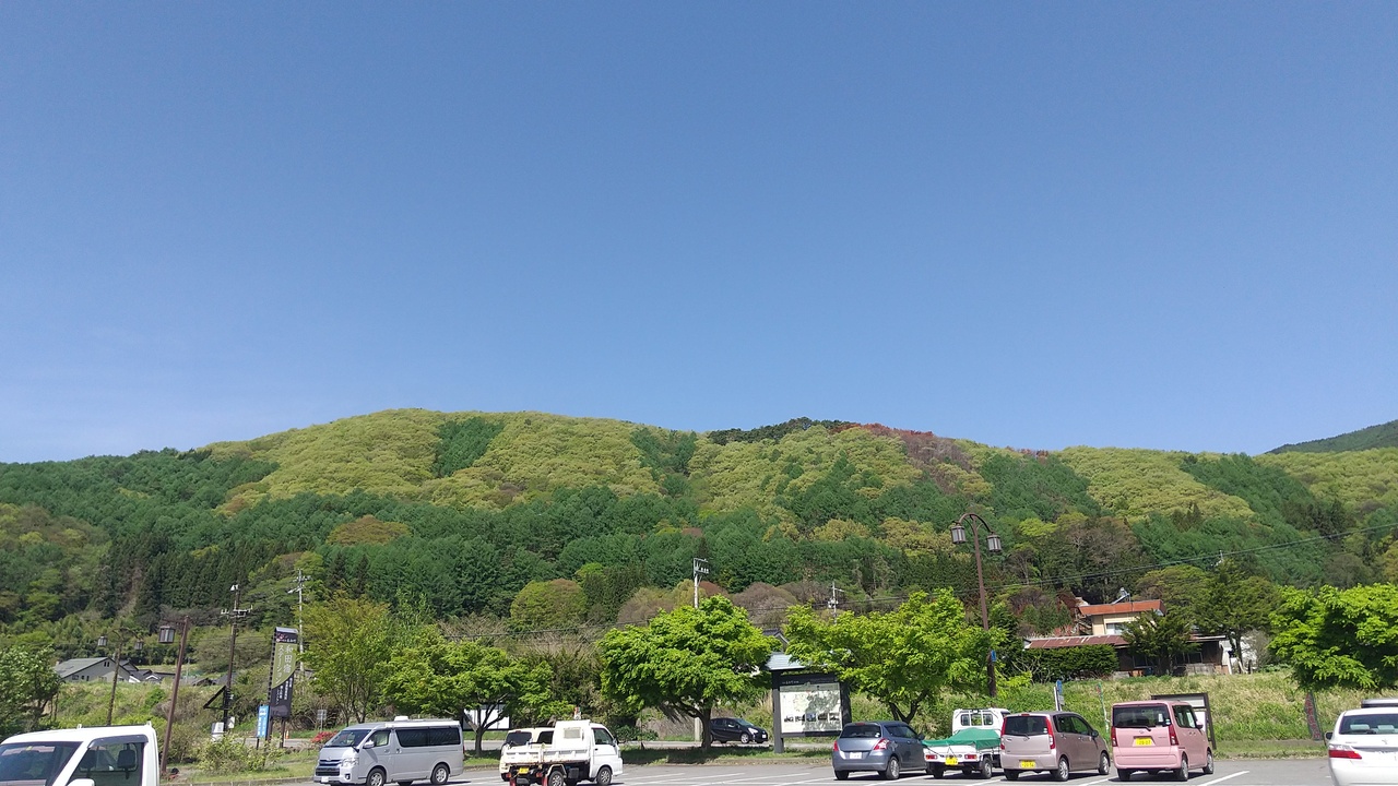 駐車場は広く周辺の新緑の景色が素晴らしかった。