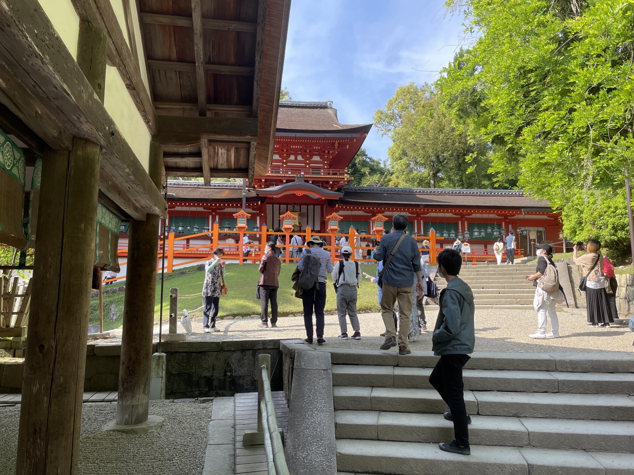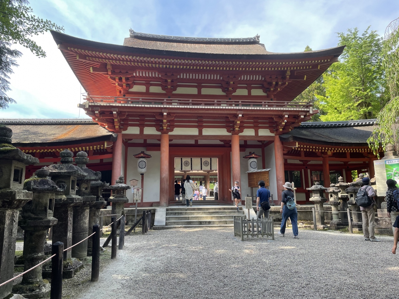 東大寺を見物した後にここに来ました。東大寺から徒歩で行きましたが、そこそこ距離がありました。途中で歩き回っている鹿たちが見られました。妻が既に疲れ切ったため、中まで参拝するのをやめました。ただ、外からでも外観が見えますので、赤い神社が綺麗でした。