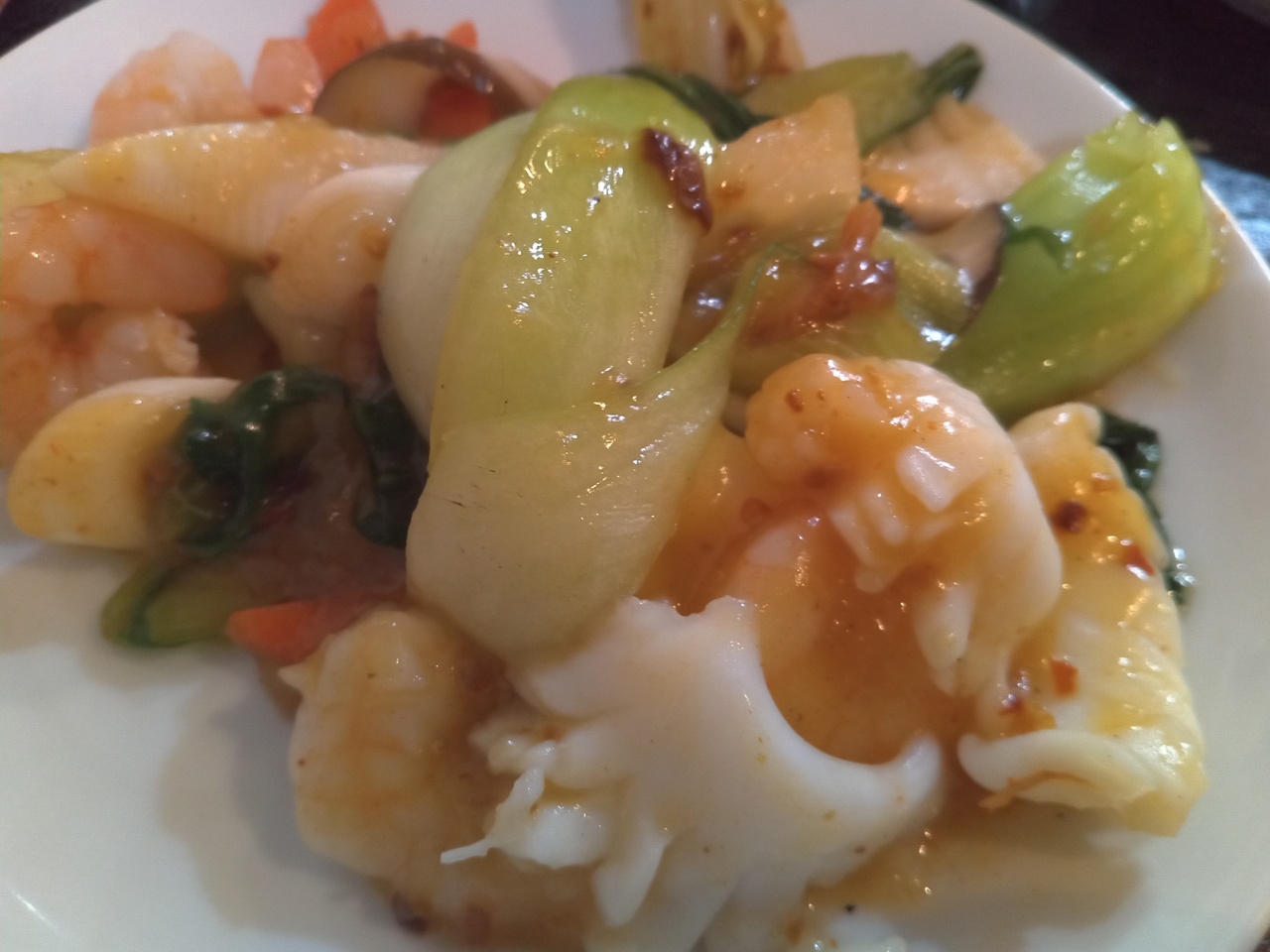 『海鮮xo醤炒め』をいただきました。『フカヒレスープ』が付いていて、フカヒレが多く入っていてちょっとびっくりしました。