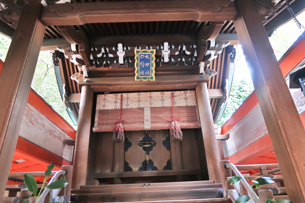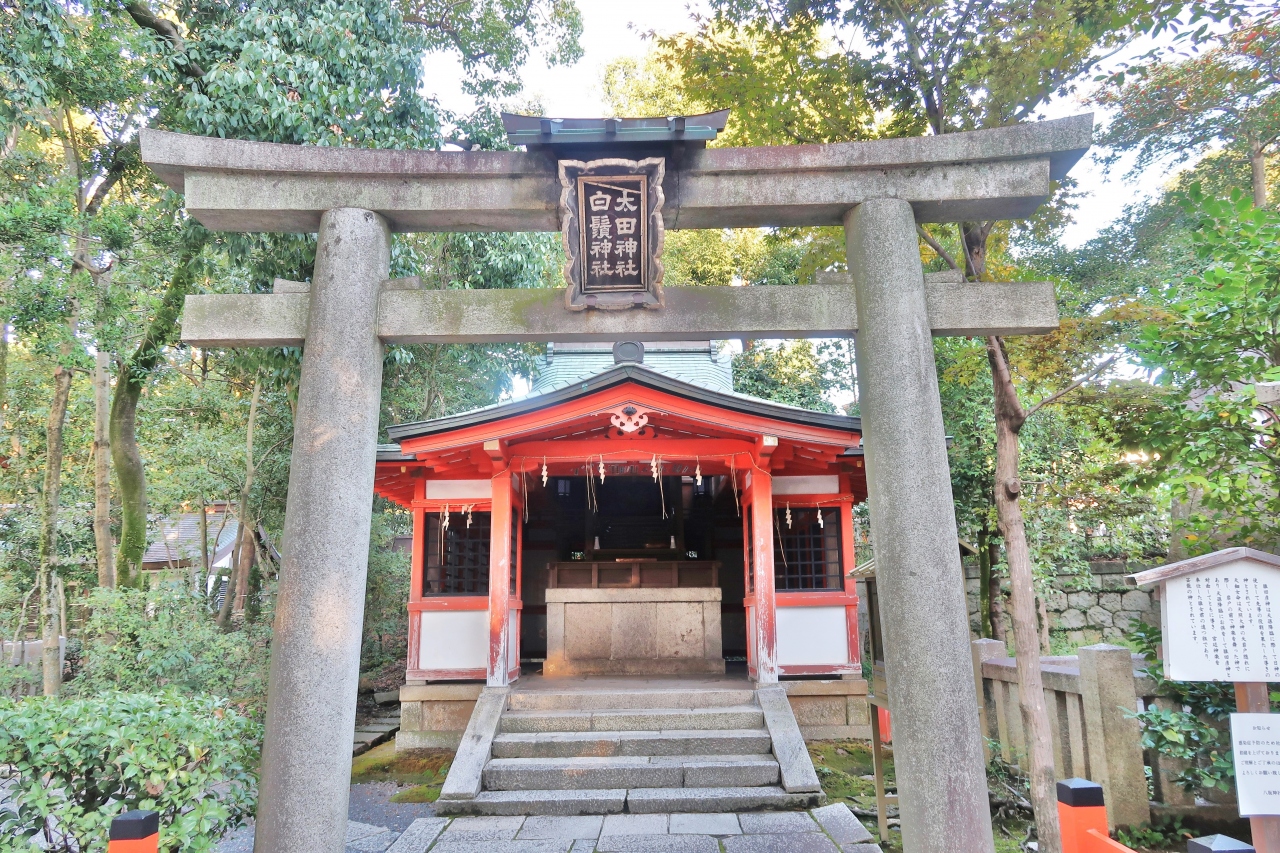 八坂神社が、平安時代に疫病が流行した際、人々の祈りで疫病が鎮まったことがきっかけで発展した疫病消除のための神社だと知り、広い境内に並ぶ摂社や末社の神様たちにも時計回りでご挨拶、コロナ終息をお願いしてきました。太田社は、北向蛭子社から西楼門へ向かう右手にありました。天照大神の孫神様を道案内した猿田彦神、天照大神の岩戸の前で神楽を舞った天鈿女命が仲良く祀られていました。
