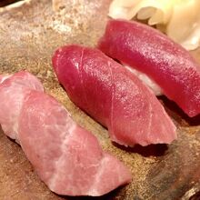 帆立貝、ヤリイカ、そして圧巻は、大トロ、中トロ、赤身の大間マグロの3種。青森ならではの食材と、田酒を存分に堪能しました。
