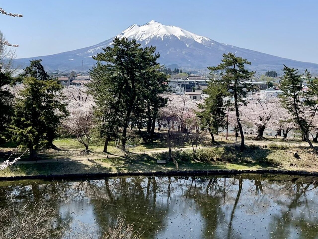 弘前城から、山頂に雪が残る津軽富士と呼ばれている岩木山が見えました。標高は1625m。青森県の最高峰で、日本百名山に名を連ねています。