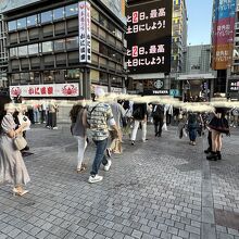戎橋 の上には、お店の呼び込みなの? いろいろな方たちが立っていました