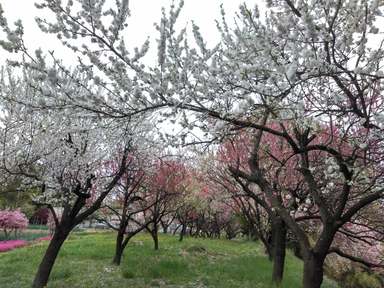 花桃の丘が見事です。