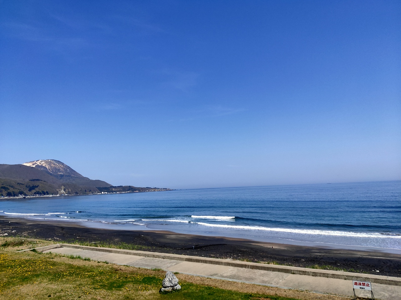 道の駅の展望台からは海が見渡せます。道の駅の建物の裏手に回ると広場があってこちらからの景色も良いですね。隣にキャンプ場ができたようで、天気の良い日は心地よく過ごせそうです。訪問した日はお土産屋さんなど開いておらず、外にチーズハドックのキッチンカーが来ていました。